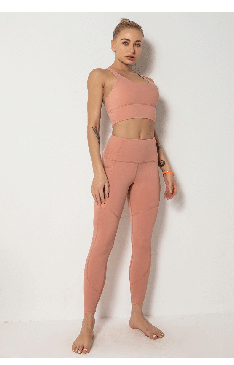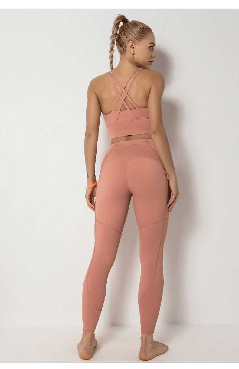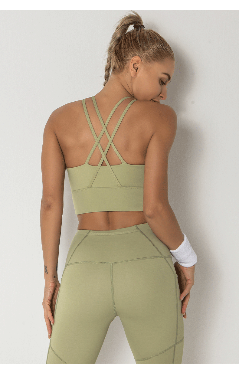 Yoga Lingerie Female Cross Sling Beautiful Back Sports Vest Running Fitness Quick Dry Sexy Bra soy flour L(6)