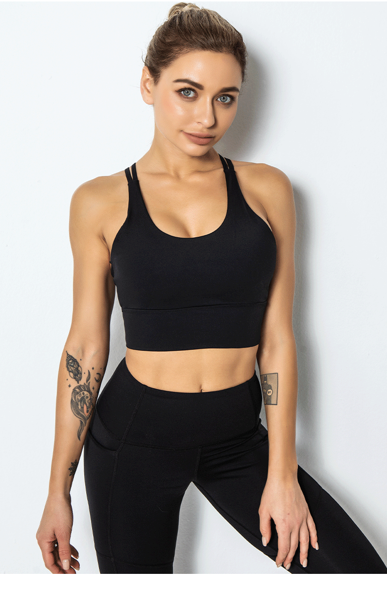 Yoga Lingerie Female Cross Sling Beautiful Back Sports Vest Running Fitness Quick Dry Sexy Bra black XL(8)