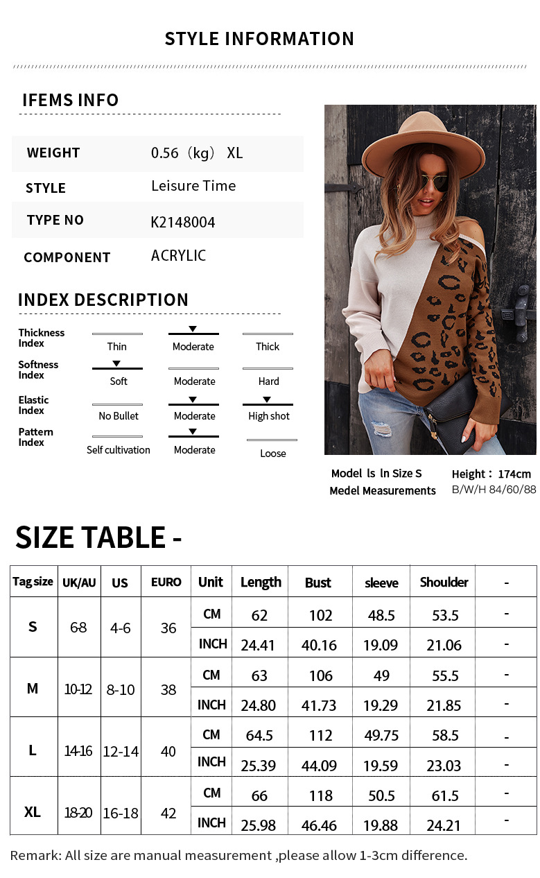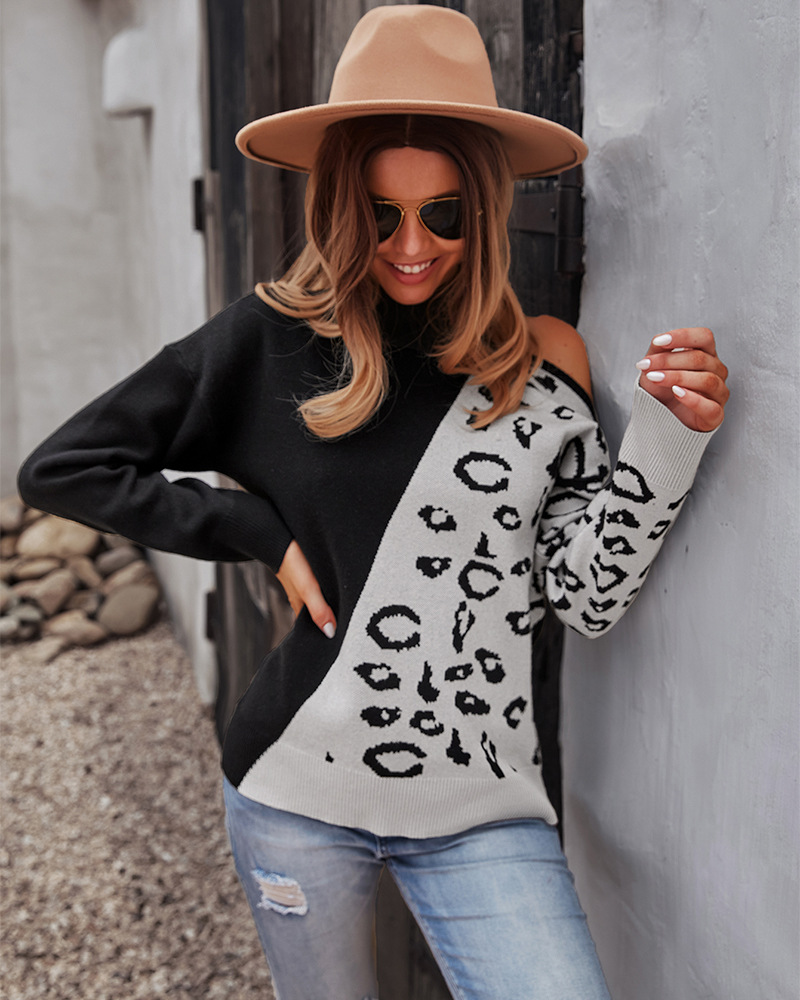 Independent research and development design American station Amazon sweater leopard print stitching top 2021 autumn and winter vest long-sleeved womens clothing black S