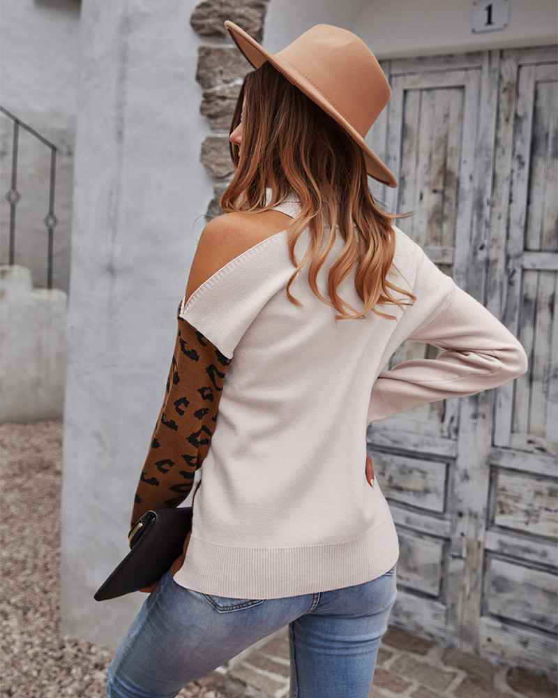 Independent research and development design American station Amazon sweater leopard print stitching top 2021 autumn and winter vest long-sleeved womens clothing Khaki M