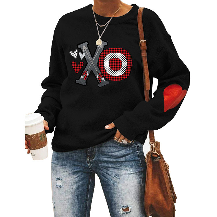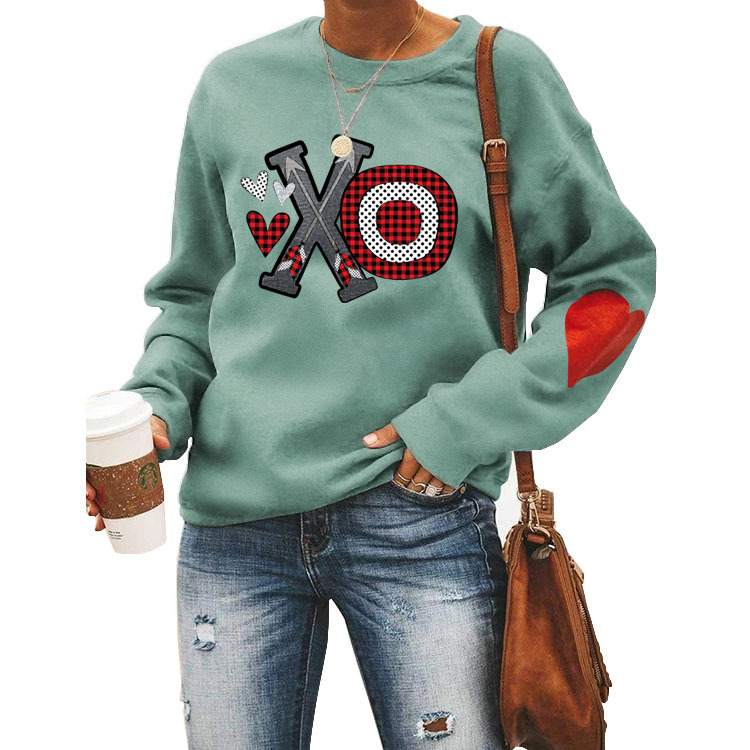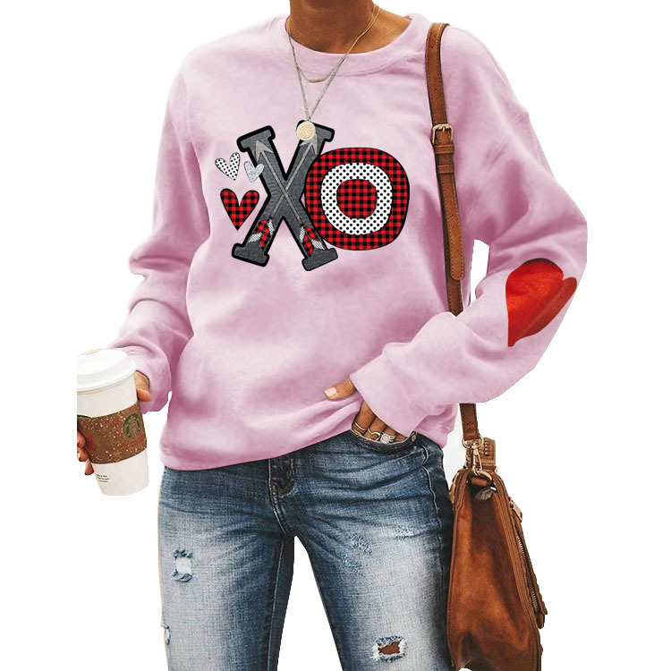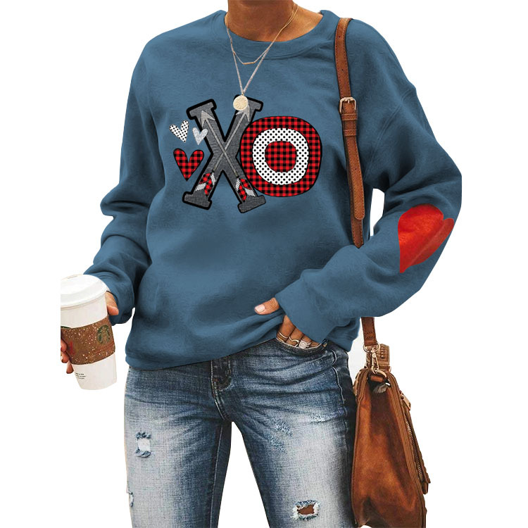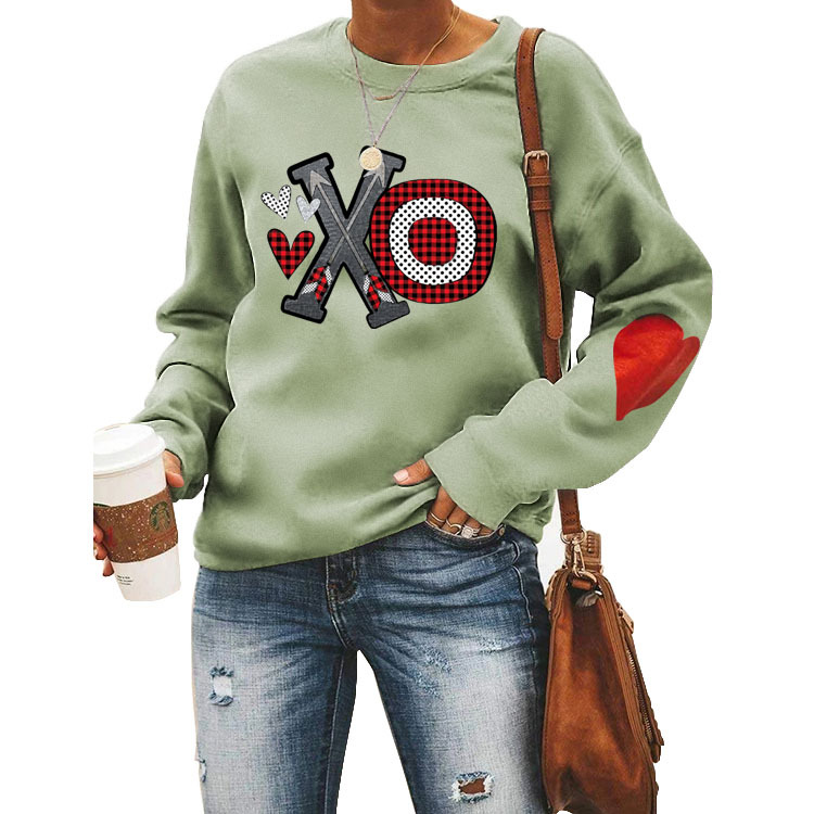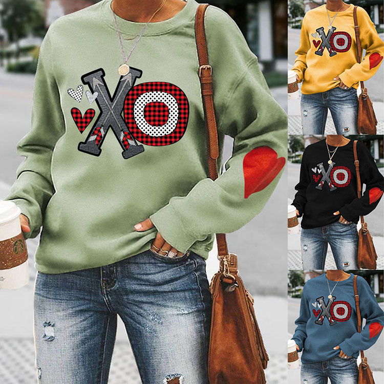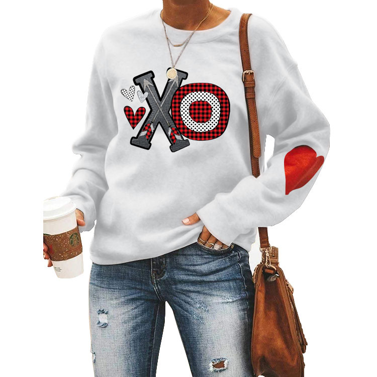 Love Wei Yi Womens Foreign Trade European and American Printing Leisure Crewneck Long Sleeve Top Clothes white Wei Yi (color picture) (love arm) XL