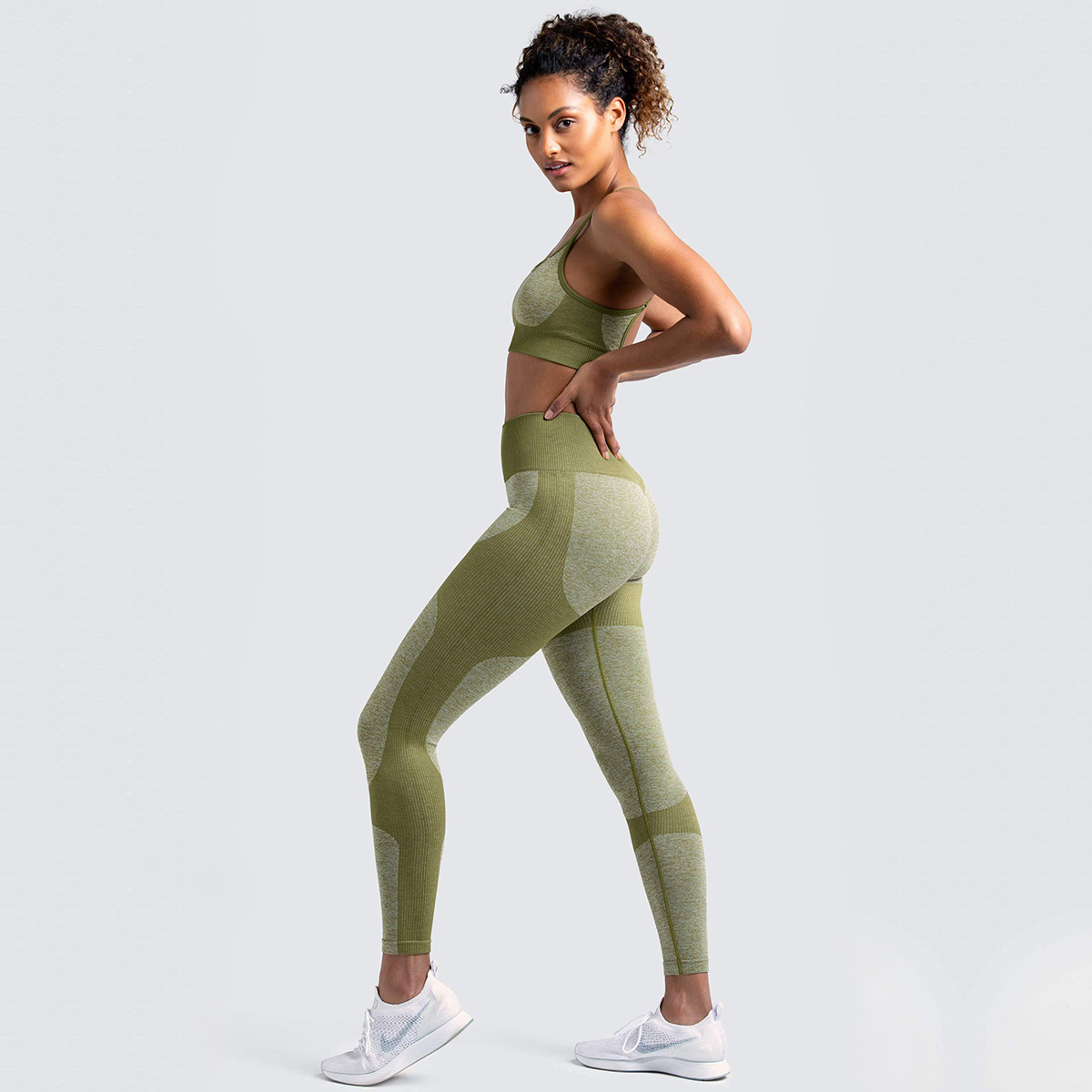 Womens Color Yoga Set bean paste L