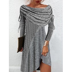 Per donna Abito in maglia Abito casual Vestito invernale Vestito longuette Grigio Manica lunga Colore puro Collage Inverno Autunno Girocollo Di tendenza Vestito invernale Giornaliero Da mare 2023 S M Lightinthebox