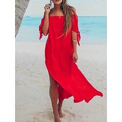 Per donna Abito casual Abito da festa Vestito svasato Abito lungo Abito lungo Nero Giallo Rosso Manica corta Colore puro Spacco Primavera Estate Senza spalline Romantico Da mare Vestito estivo Abito Lightinthebox