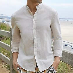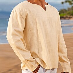 Per uomo camicia di lino Camicia estiva A V Primavera estate Manica lunga Nero Bianco Rosso Liscio Per eventi Da mare Abbigliamento Lightinthebox