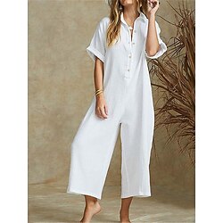 Per donna Tuta Pulsante Tasche Tinta unica Colletto Essenziale Giornaliero Da mare Standard Manica corta Nero Bianco Cachi S M L Primavera Lightinthebox