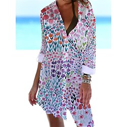 Per donna Prendisole Abito da spiaggia Abbigliamento da spiaggia Mini abito Stampa Di tendenza Informale Floreale A V Manica lunga Morbido Esterno Giornaliero Bianco Giallo 2023 Primavera Estate S M Lightinthebox