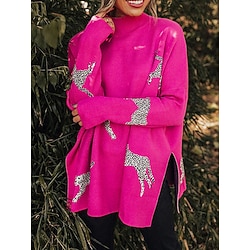 Per donna Pullover Maglione Maglione A coste Maglia Oversize Animali Colletto alla coreana Moda Informale Giornaliero Per uscire Autunno Primavera Fucsia Cachi S M L miniinthebox