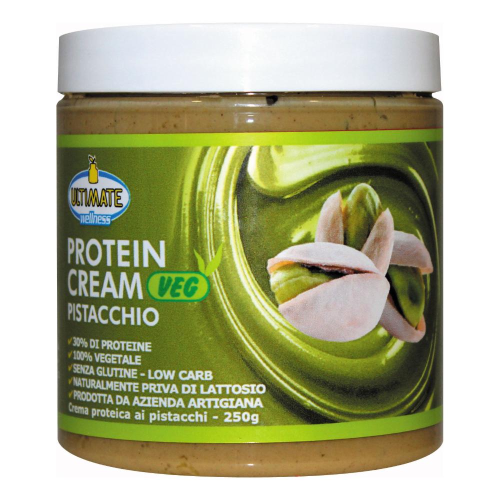 ULTIMATE WELLNESS PROTEIN CREAM - PISTACCHIO Crema proteica ai pistacchi con proteine vegetali. 100% vegetale. 30% di proteine. Low carb. Con edulcoranti. Ingredienti Mix di proteine vegetali 29,4% (proteine di soia, proteine di pisello, proteine di riso), olio di arachidi; edulcoranti: eritritolo,…