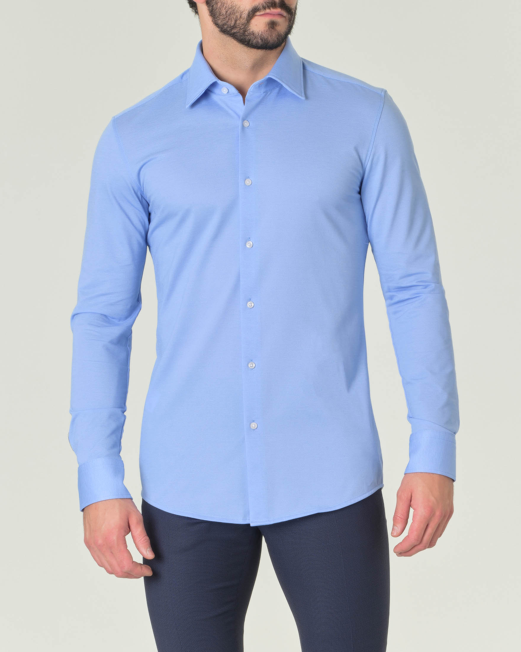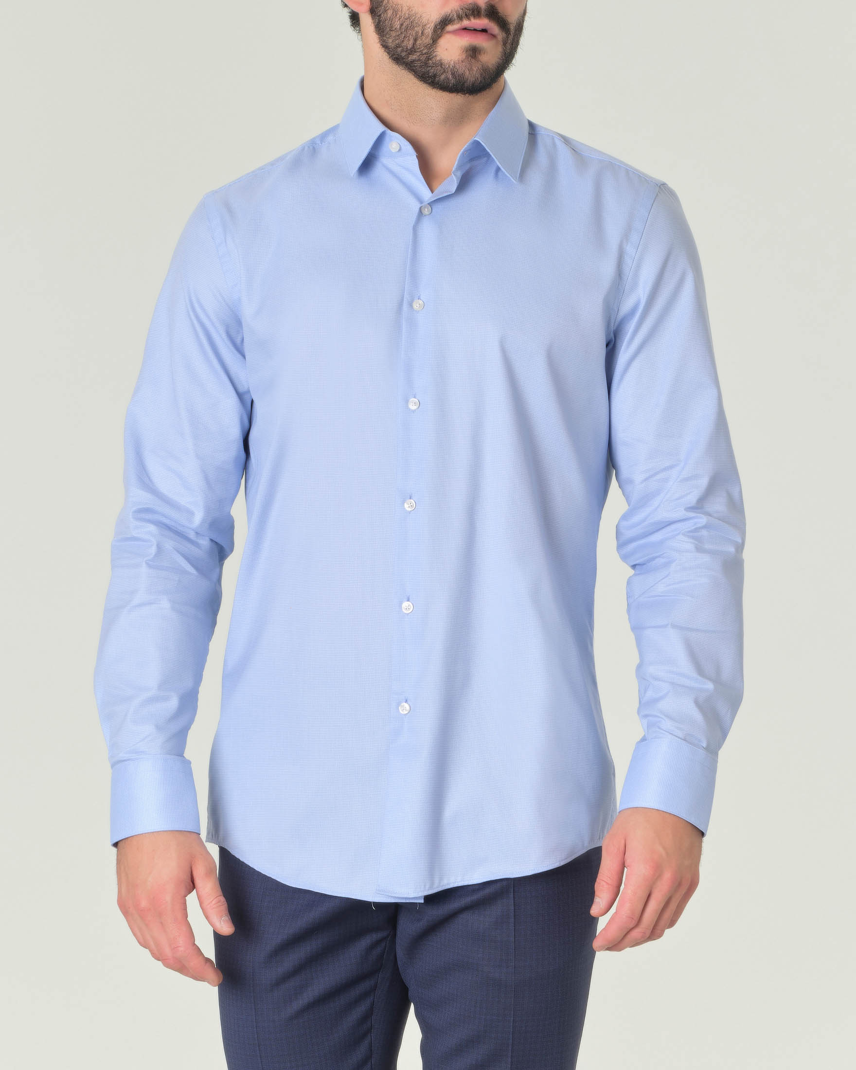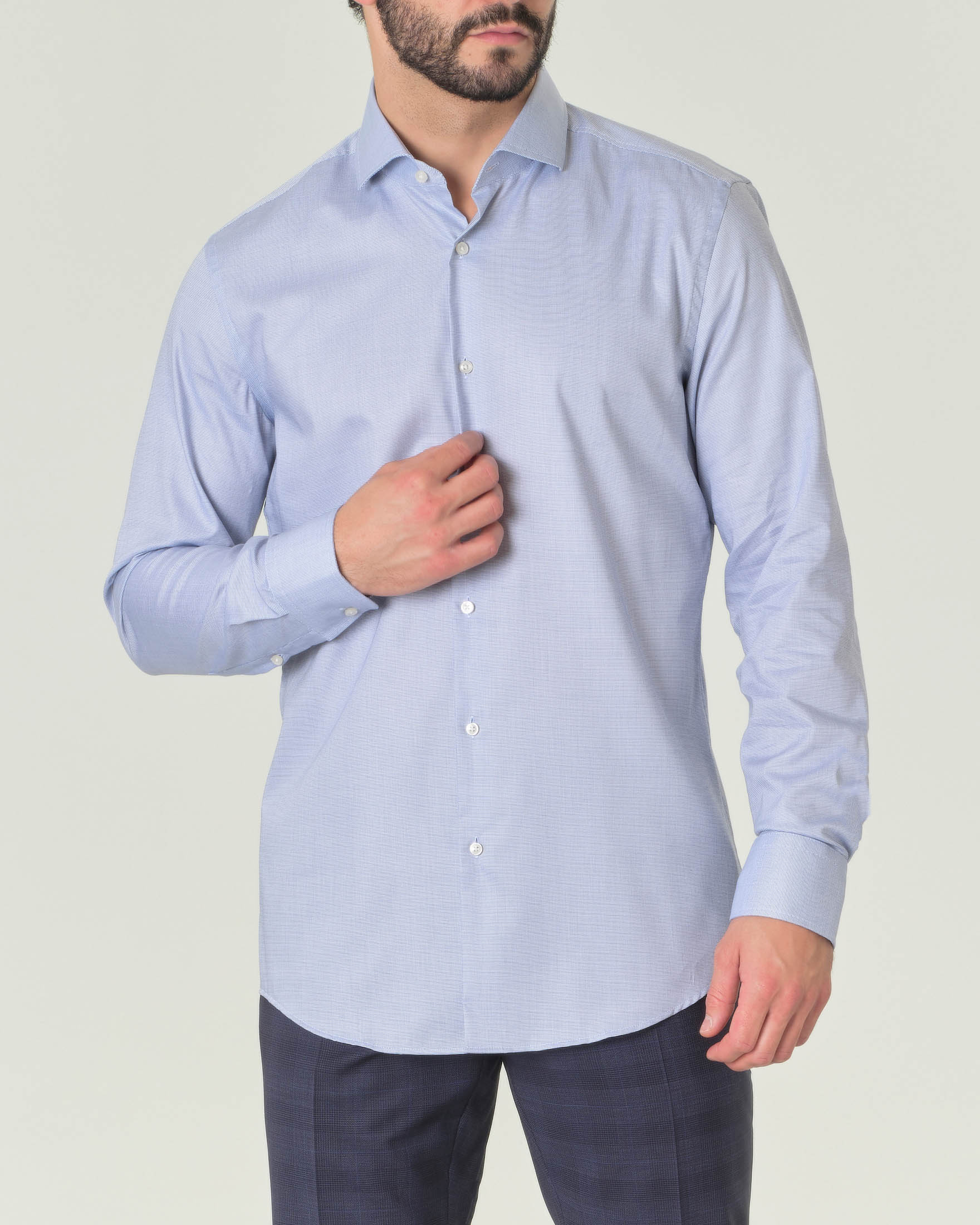 Camicia azzurra Hank in puro cotone con armatura a pied de poule