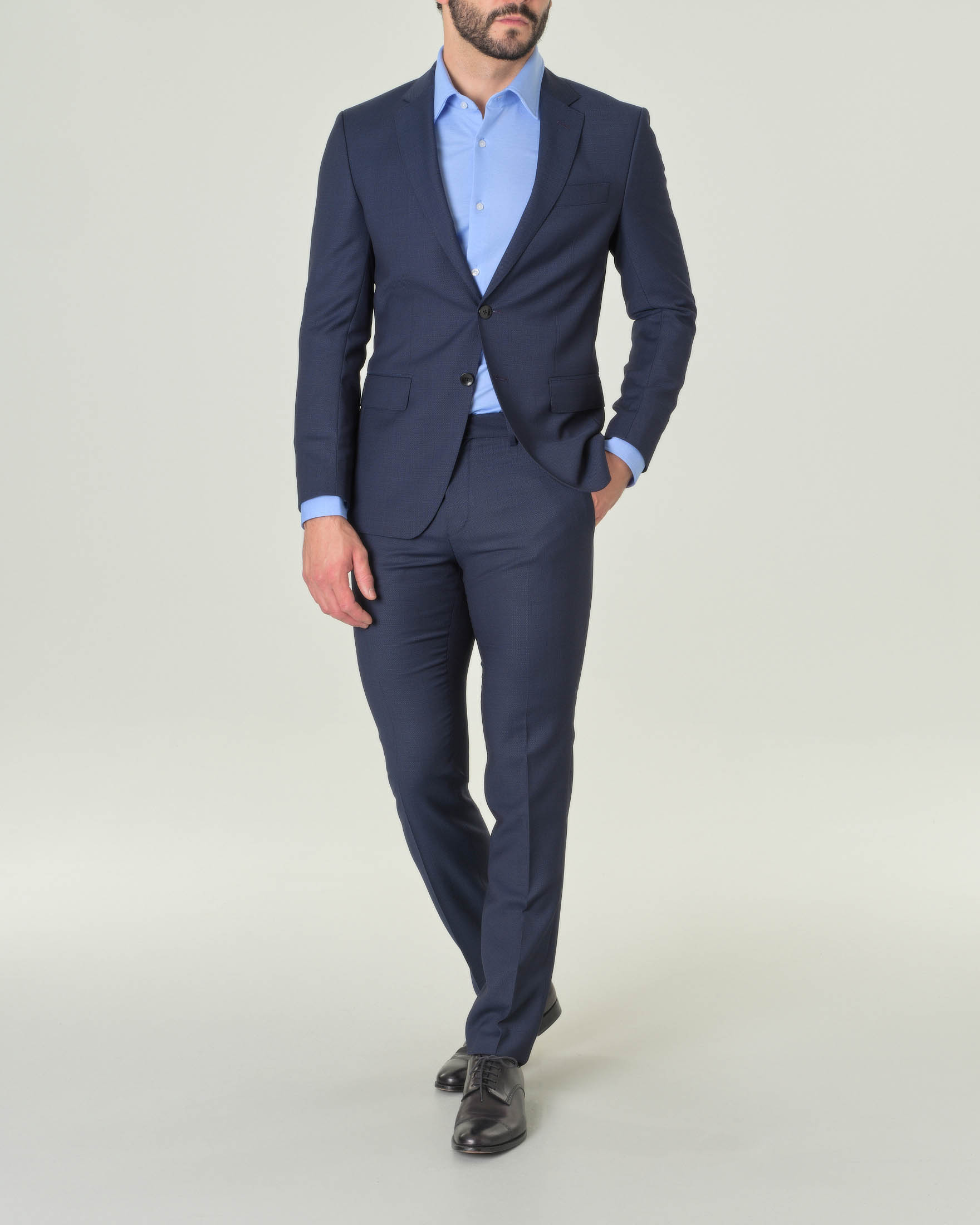 Abito blu in tessuto armaturato di pura lana con rever classico