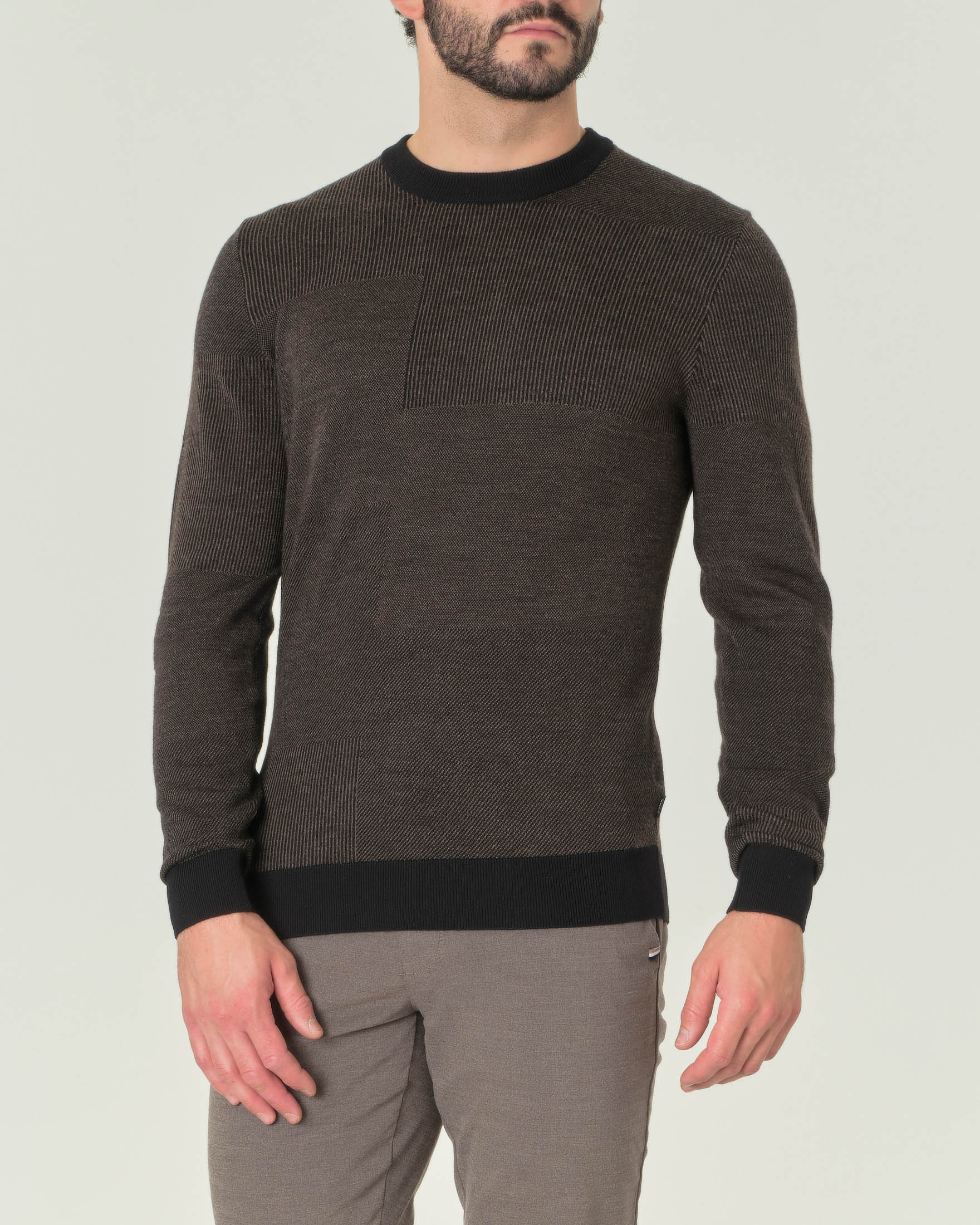 Maglia nera e color noce melange girocollo in lana con doppia lavorazione