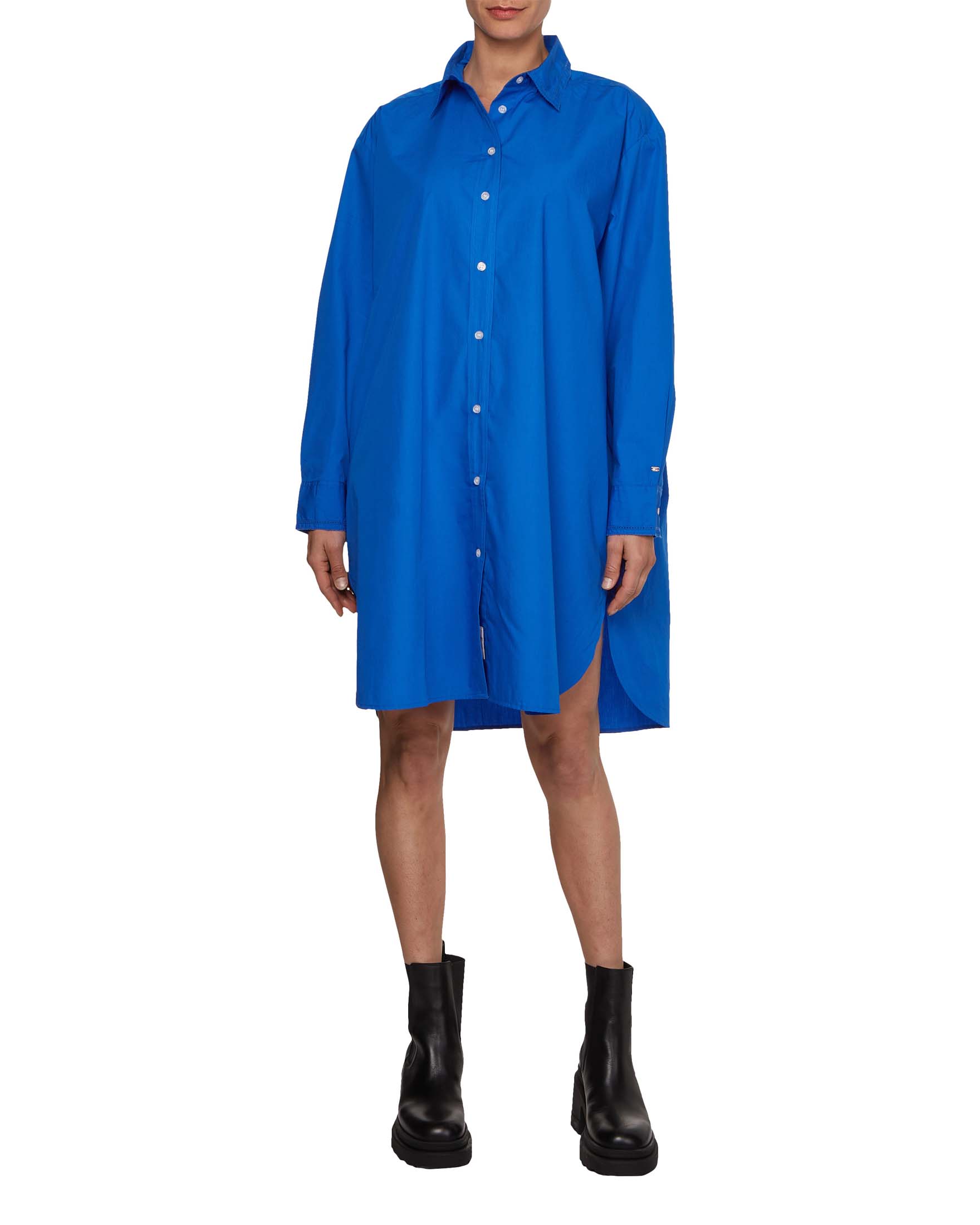 Abito chemisier midi blu China in puro cotone con colletto classico e spacchi laterali