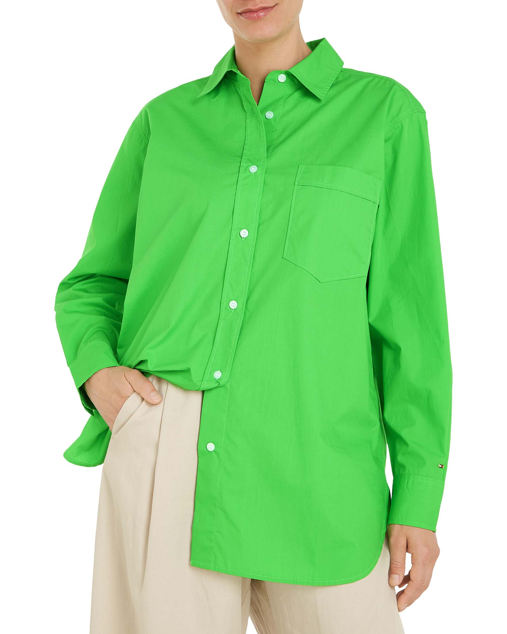 Camicia verde lime oversize in popeline di cotone ccon tasca applicata al petto