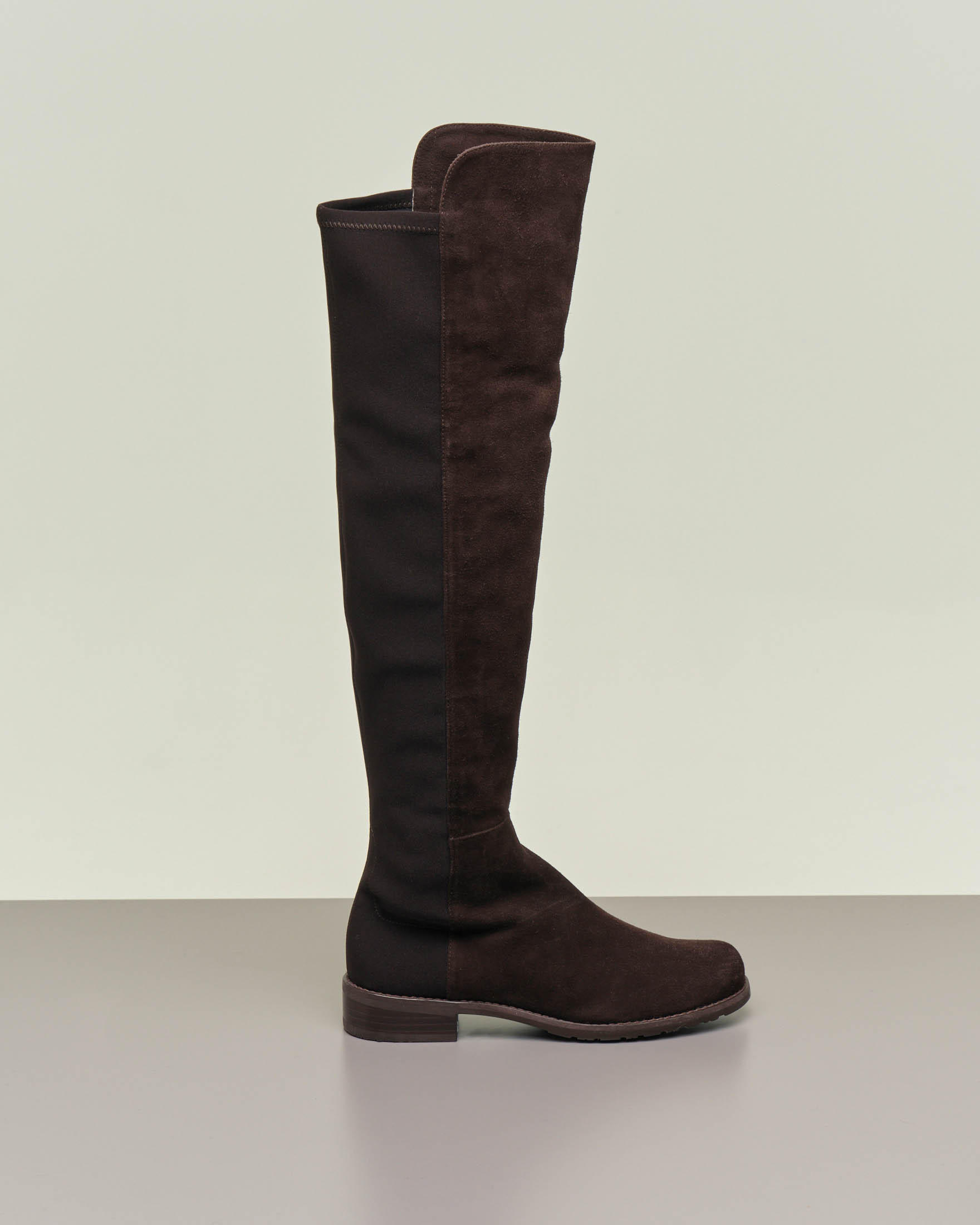 Stivali sopra il ginocchio in suede color testa di moro con fascia elasticizzato sul retro