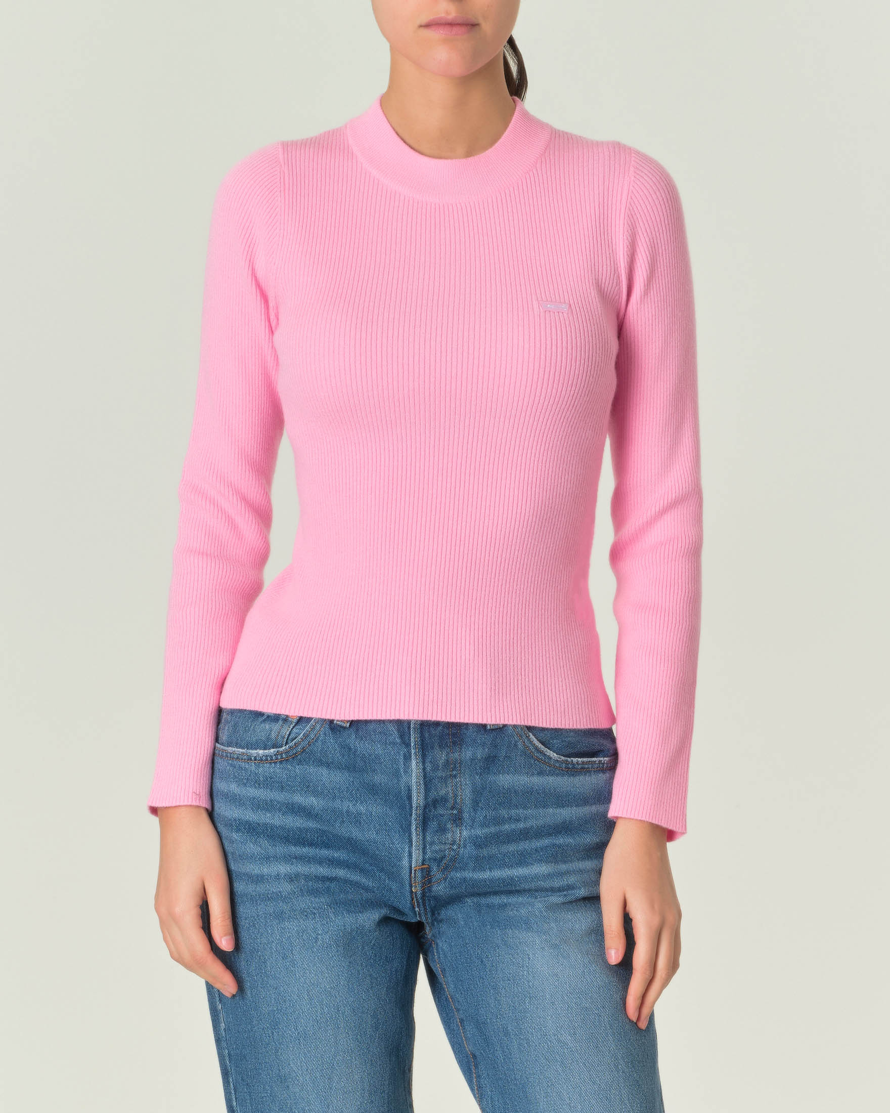 Maglia rosa bubble a costine con batwing rosso ricamato sul petto