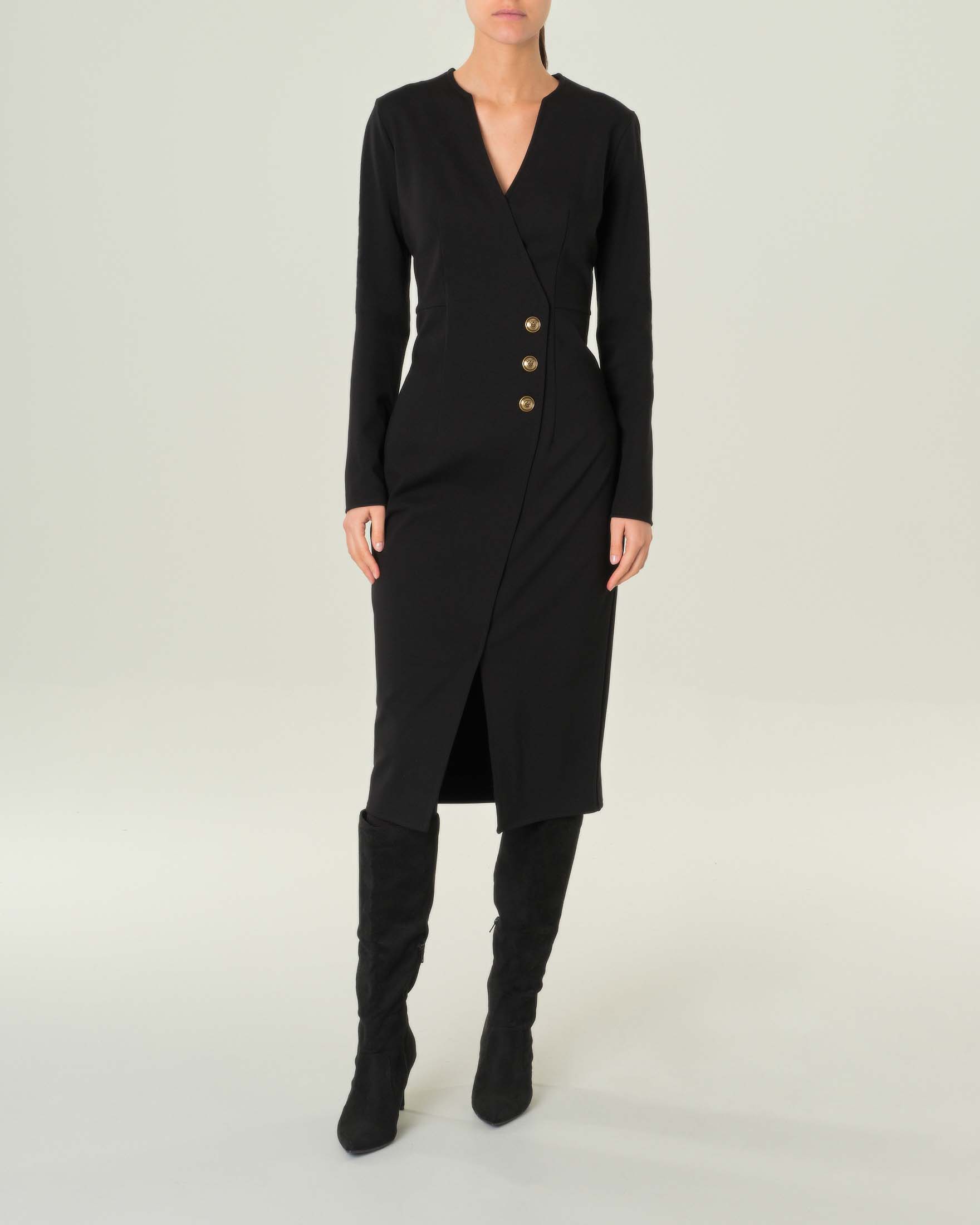 Abito midi nero in viscosa a punto Milano con maniche lunghe con finta apertura a portafoglio