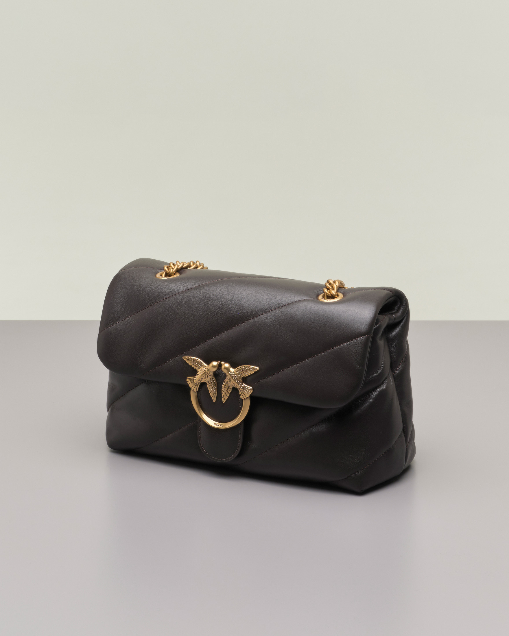 Love Bag Puff color testa di moro in nappa misura media con motivo matelassè obliquo e fibbi dorata Love Birds