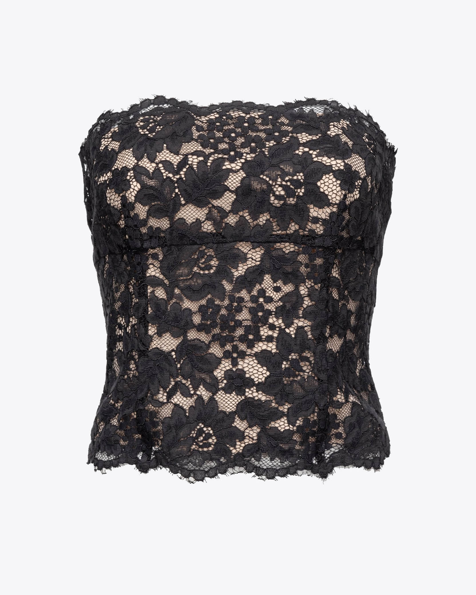 Bustier nero in pizzo rebrodé dal pattern floreale di misto cotone con scollo a cuore