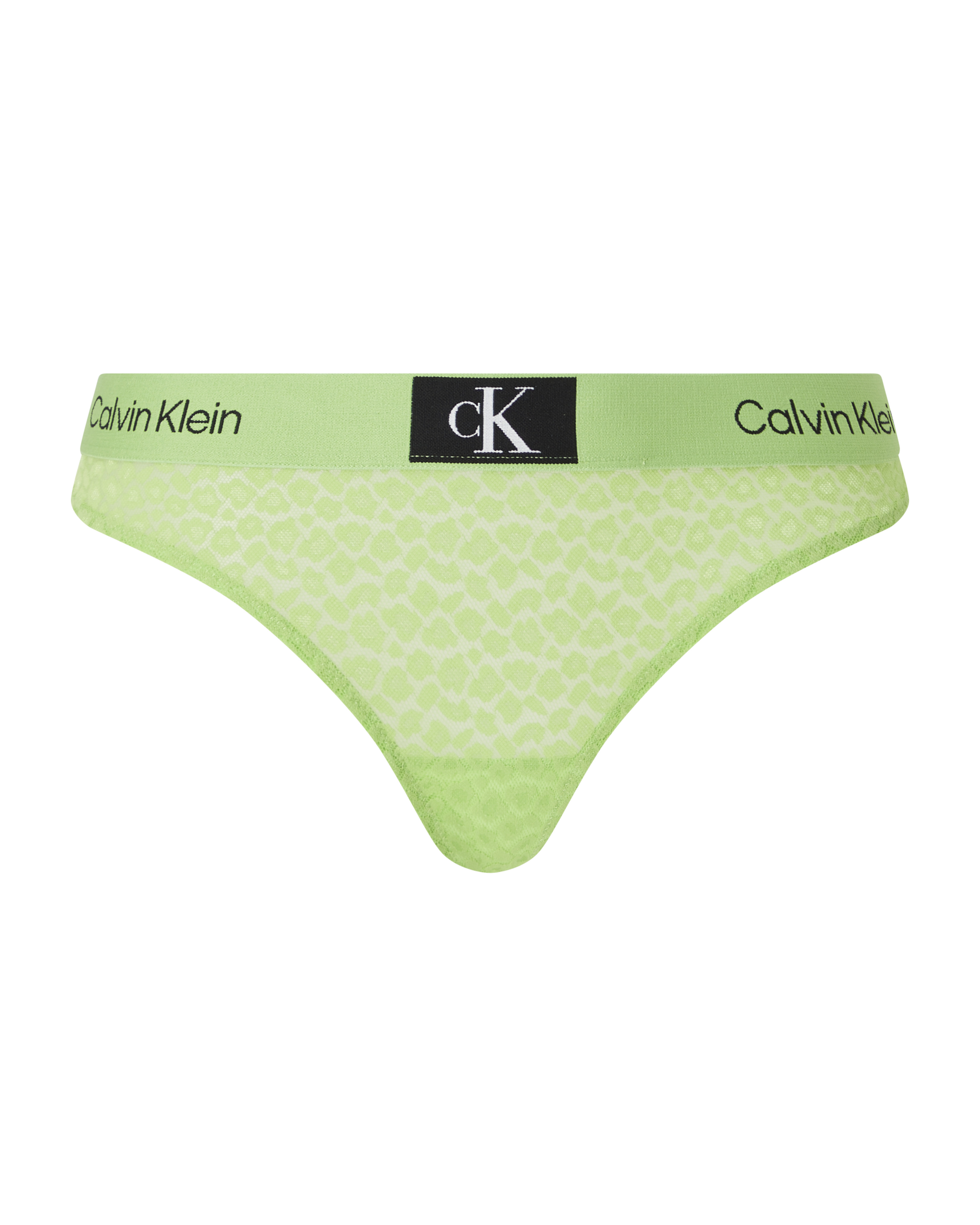 Slip a perizoma verde lime in pizzo a motivo animalier con fascia elastica in vita