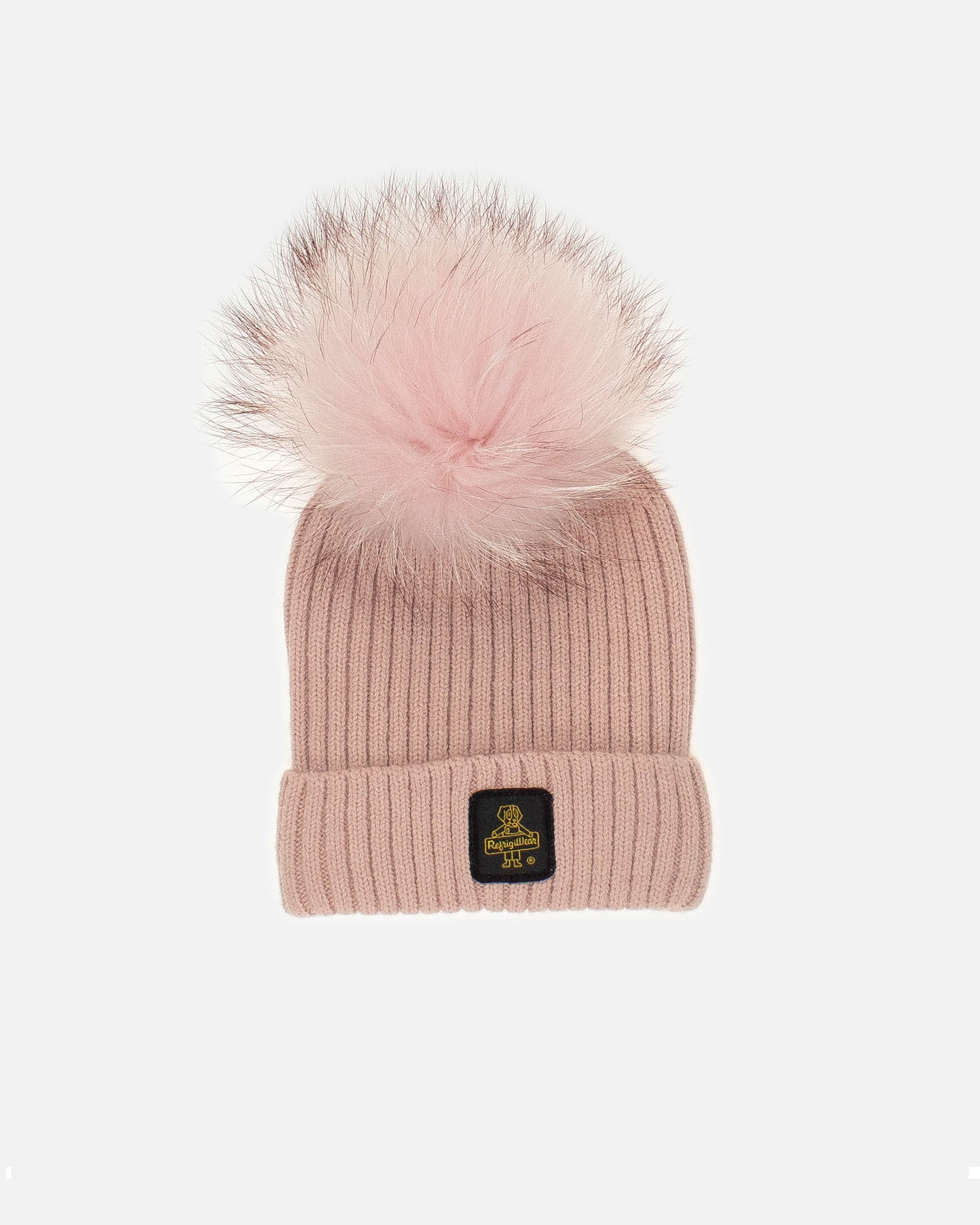 Berretto rosa a coste con pompon e logo