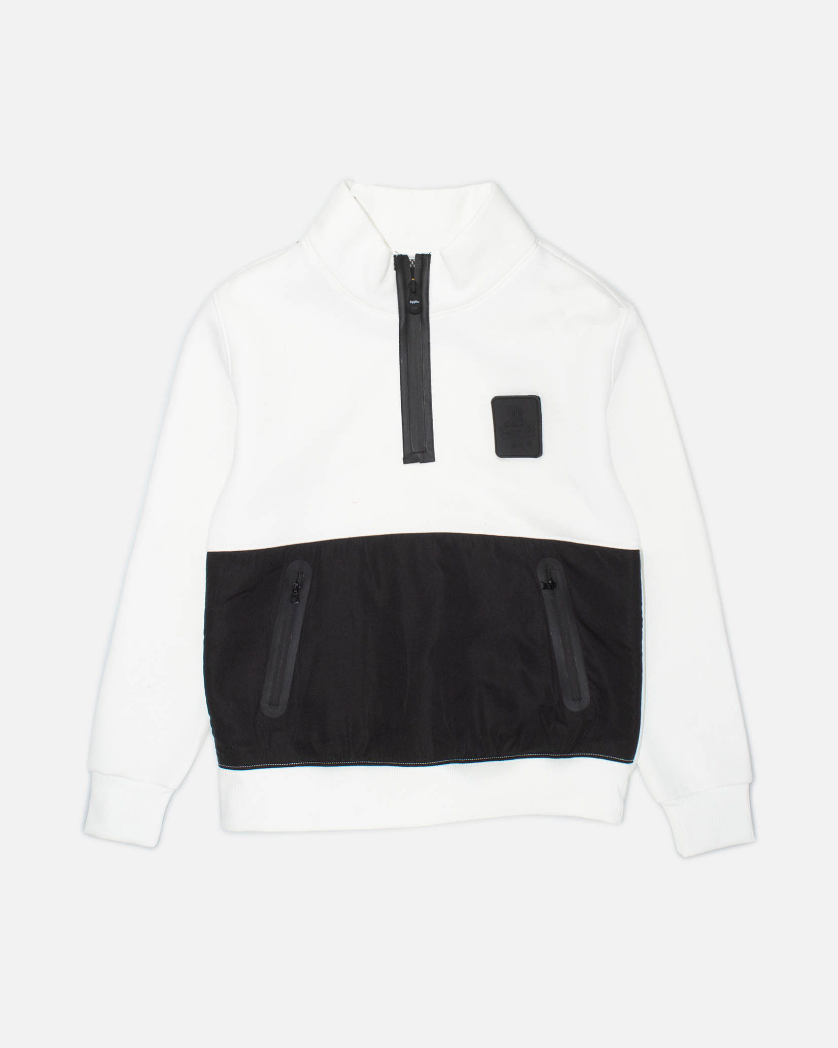Felpa bianca con colletto alto con zip e fascia nera sul fondo 10-16 anni