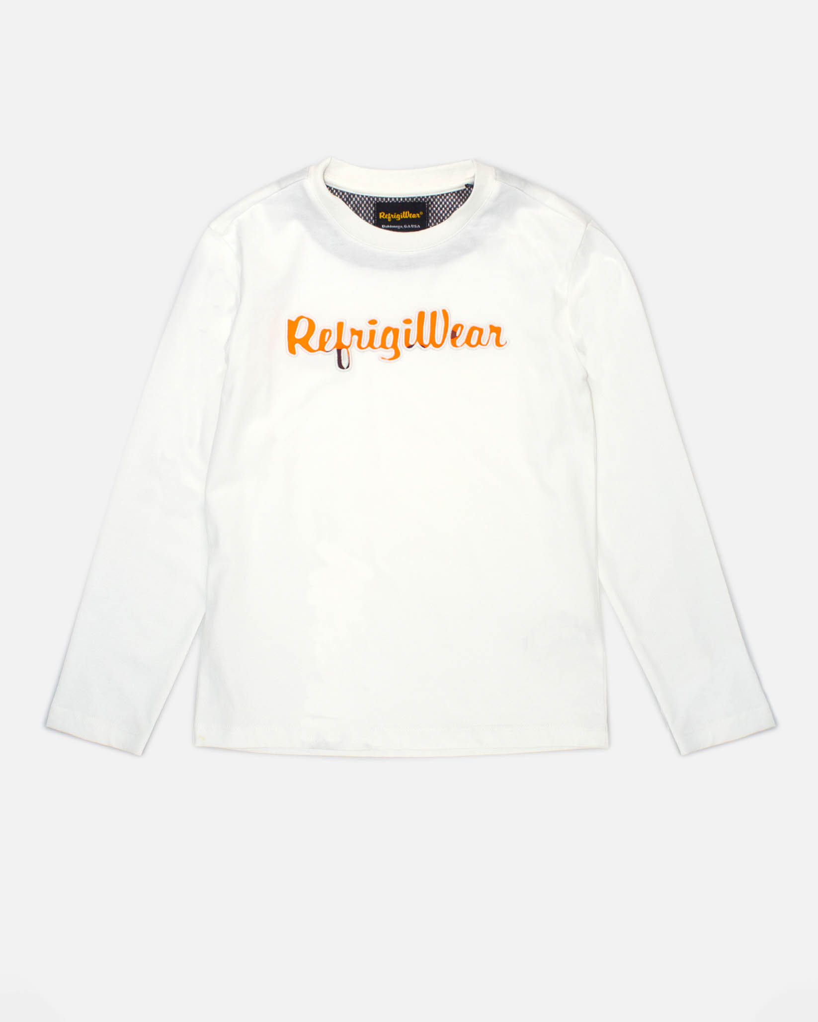T-shirt bianca a manica lunga in cotone con stampa logo arancio 8-16 anni