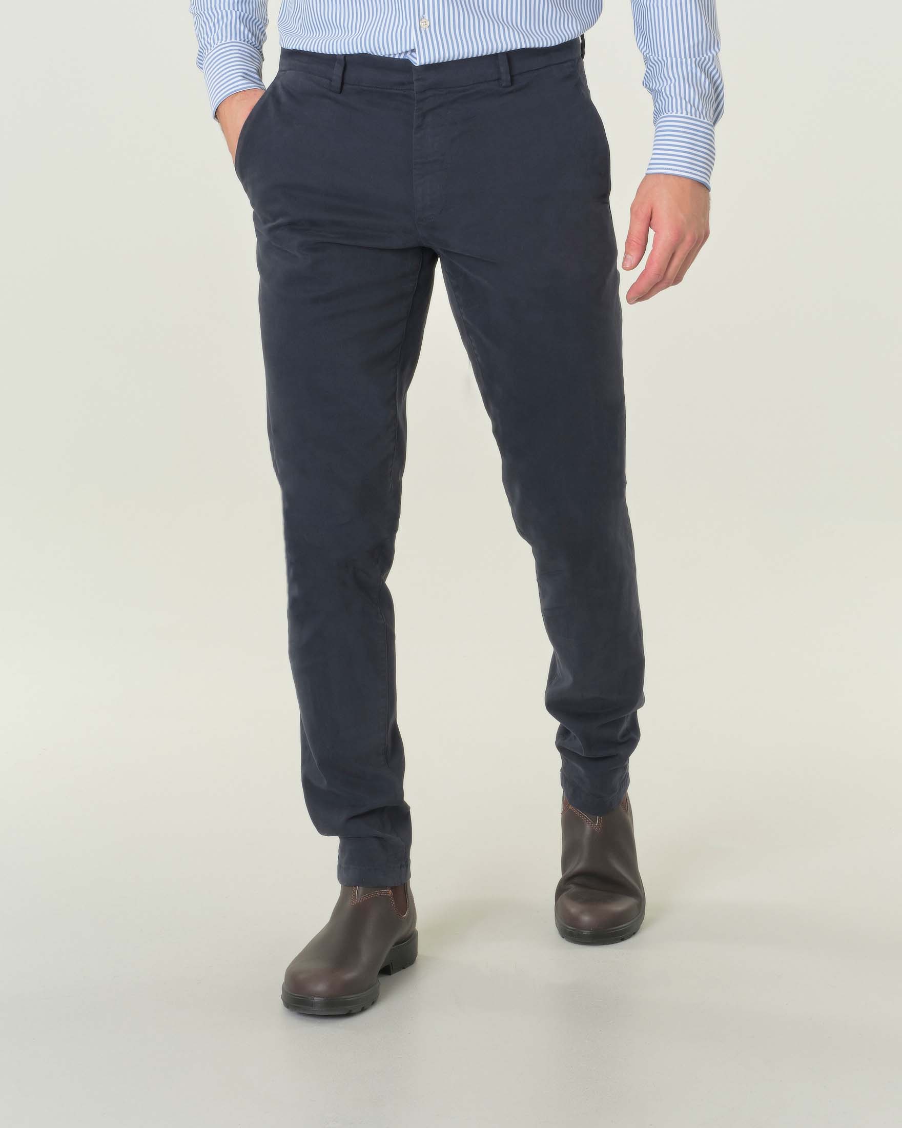 Pantaloni chino carrot fit blu navy in gabardina di cotone stretch