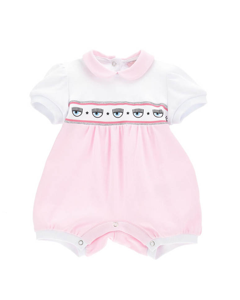 Pagliaccetto rosa e bianco in cotone a manica corta con fascia porta logo eyestar 3-6 mesi