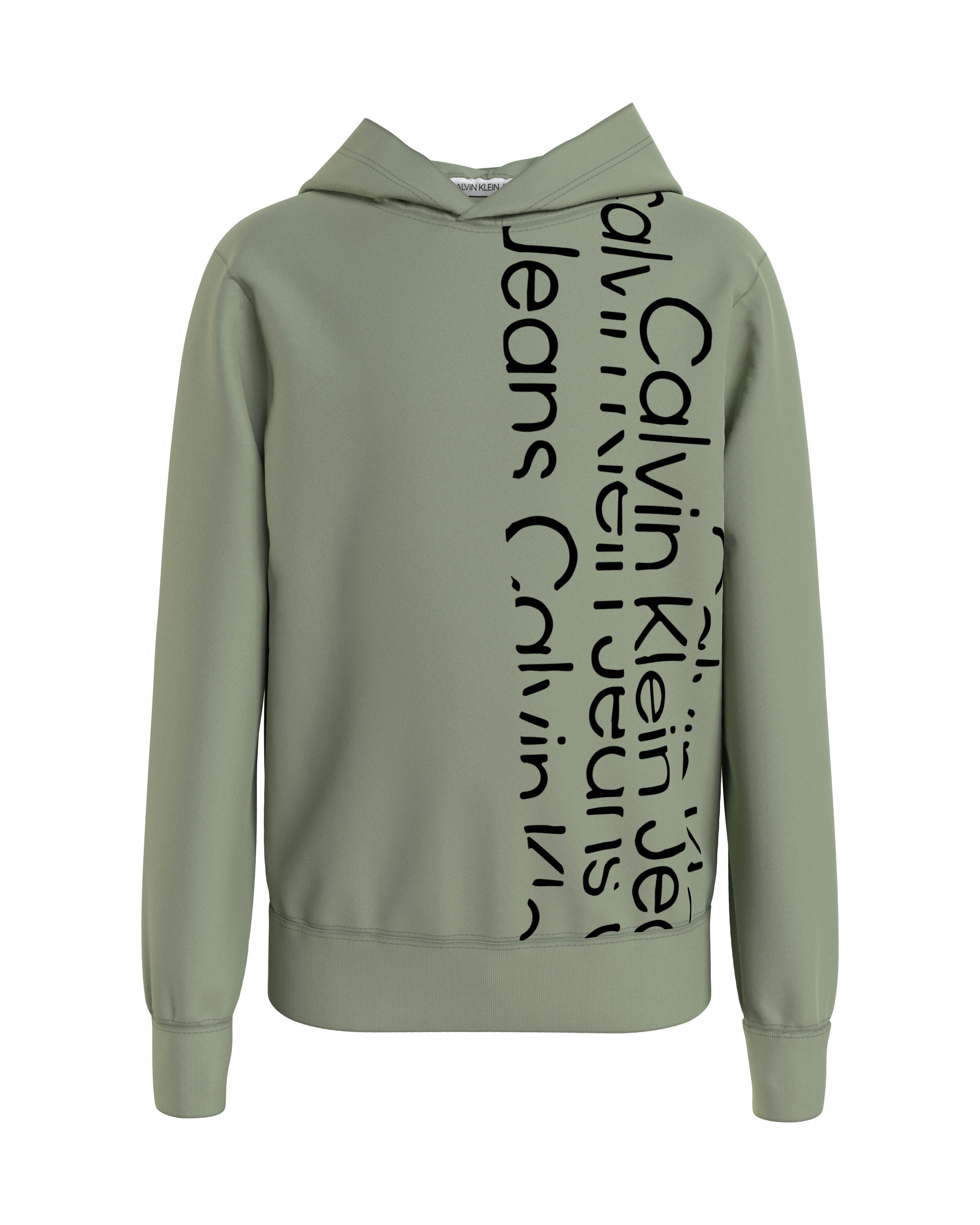 Felpa verde militare in puro cotone con cappuccio e stampa logo nero ripetuto 10-16 anni