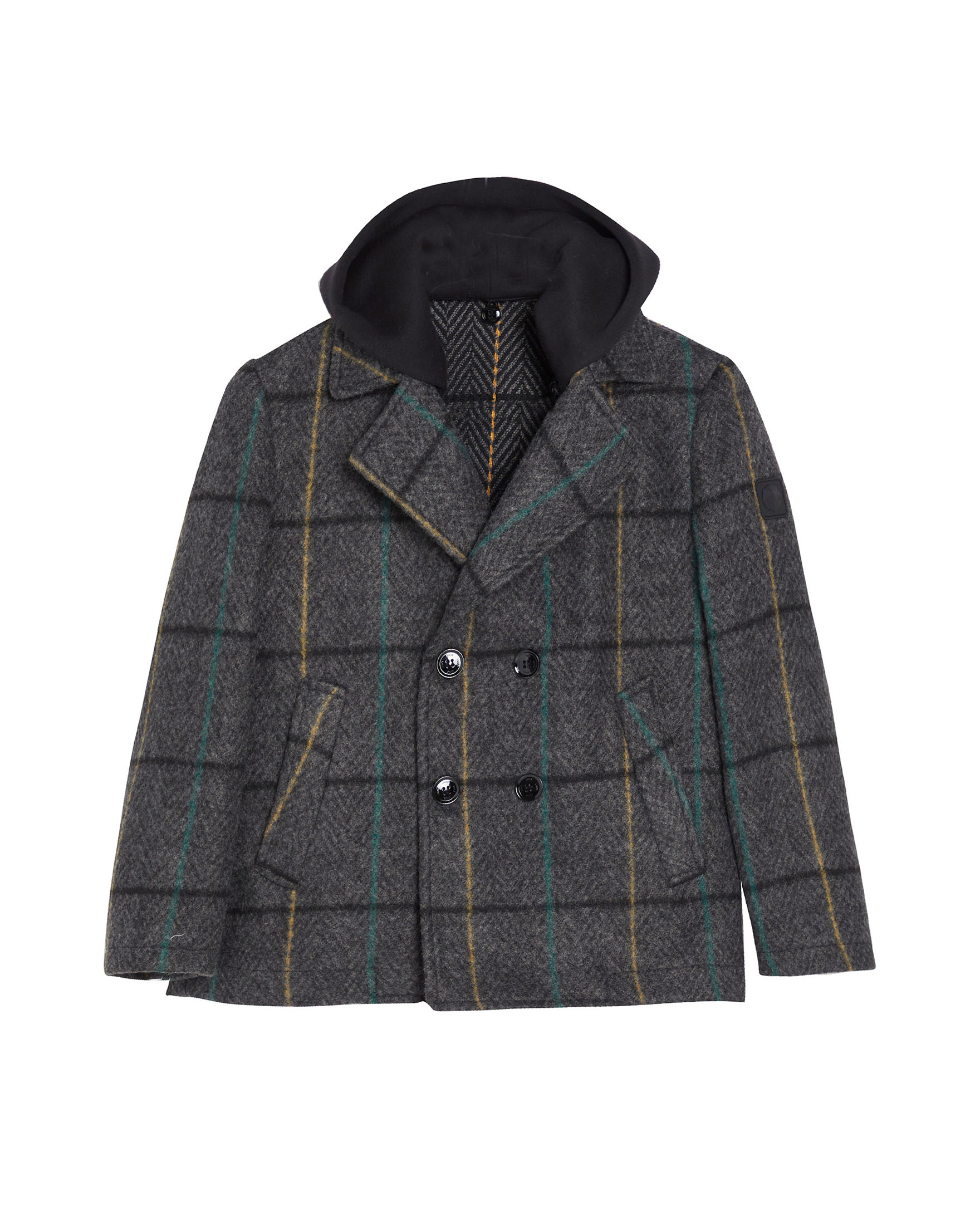 Caban grigio spinato in fantasia check multicolor con cappuccio in felpa nero 10-16 anni