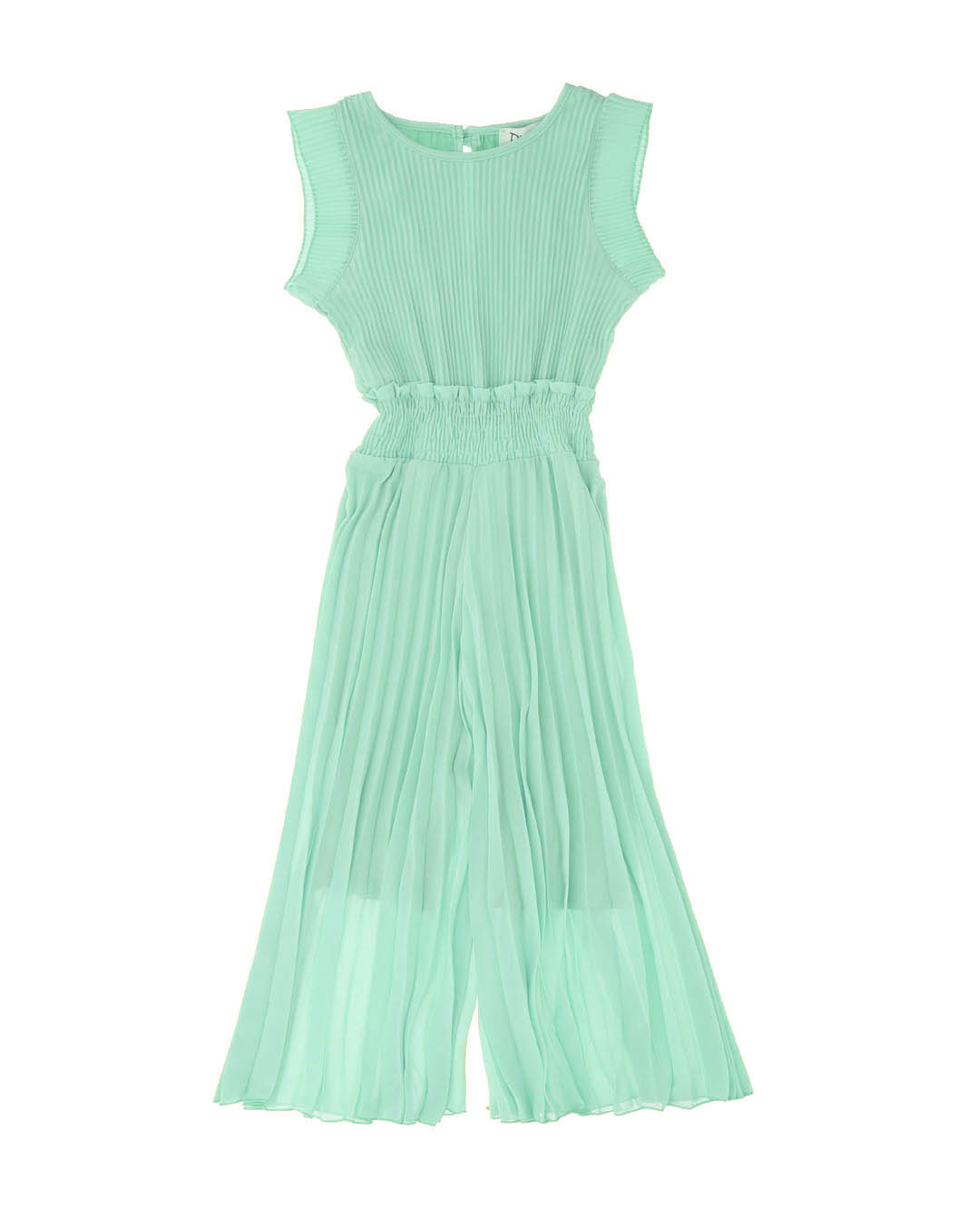 Abito tuta color acqua in tessuto plissettato con pantaloni a palazzo e maniche ad aletta M-2XL