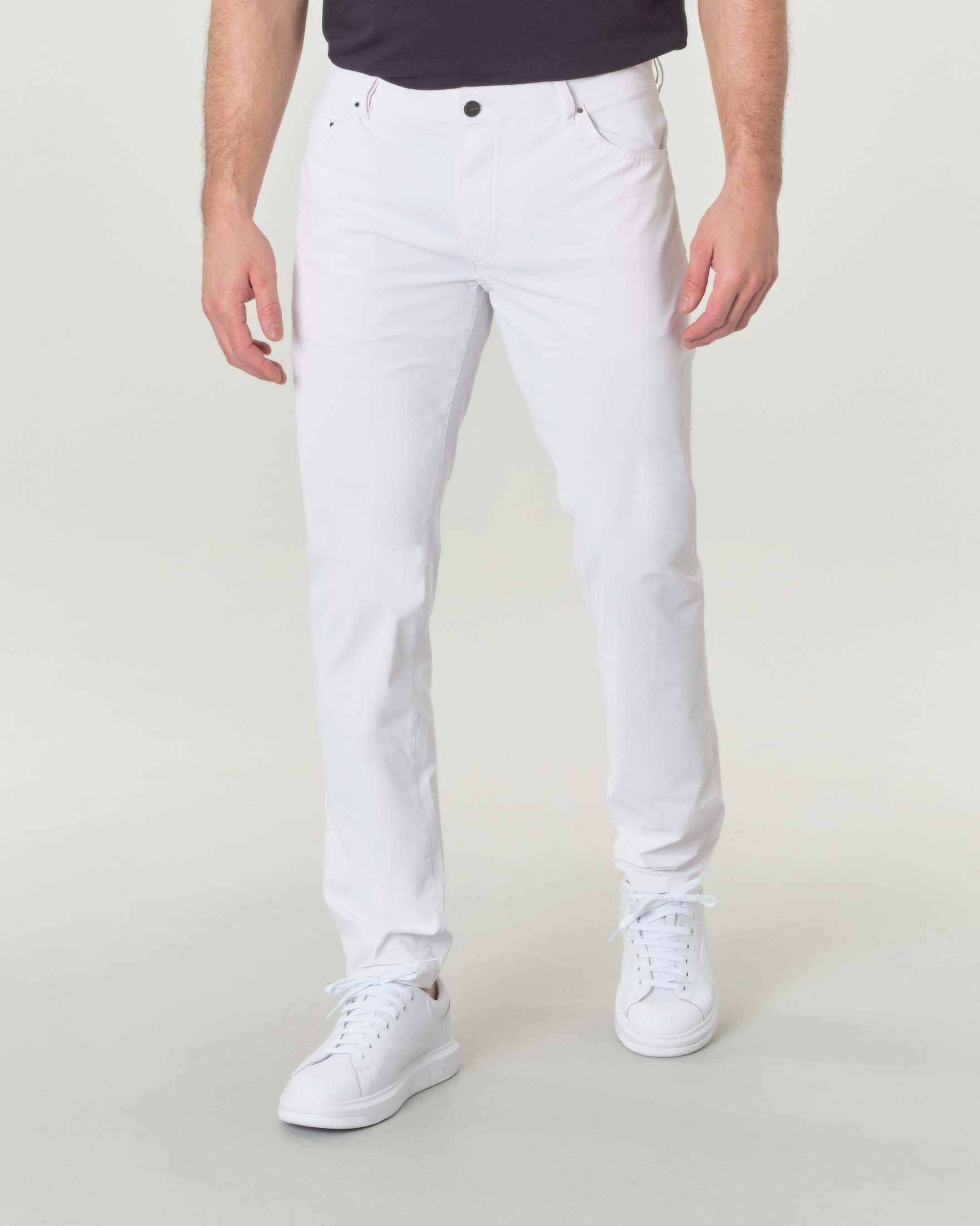 Pantaloni cinque tasche slim bianchi Tecno Wash in tessuto tecnico stretch