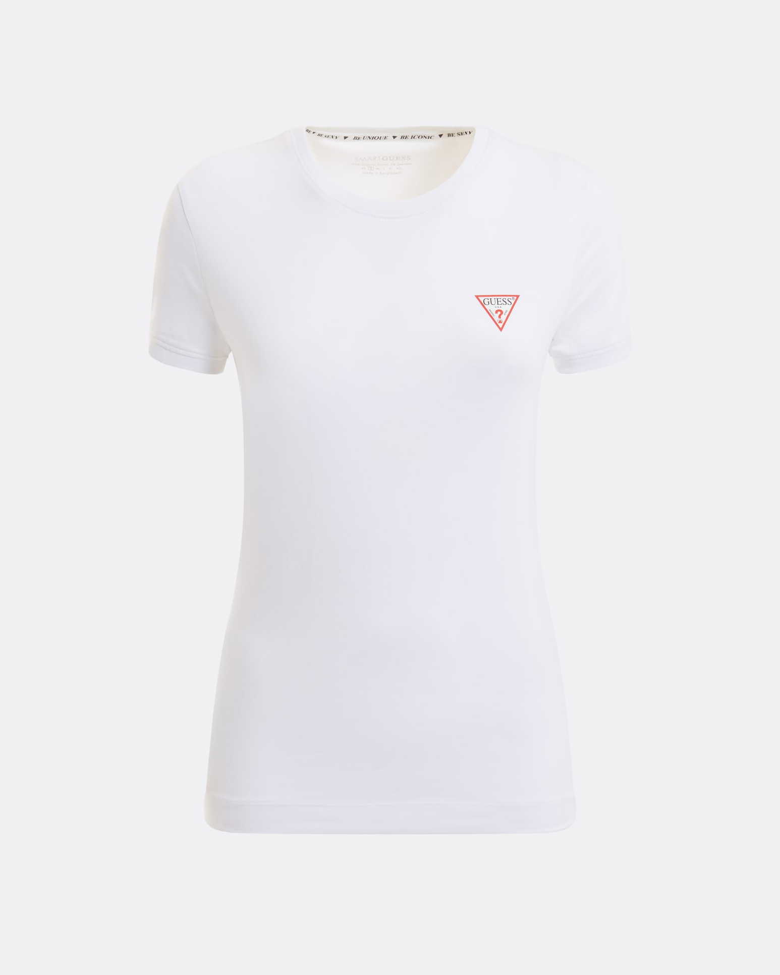 T-shirt girocollo bianca in cotone stretch con stampa logo triangolare sul petto