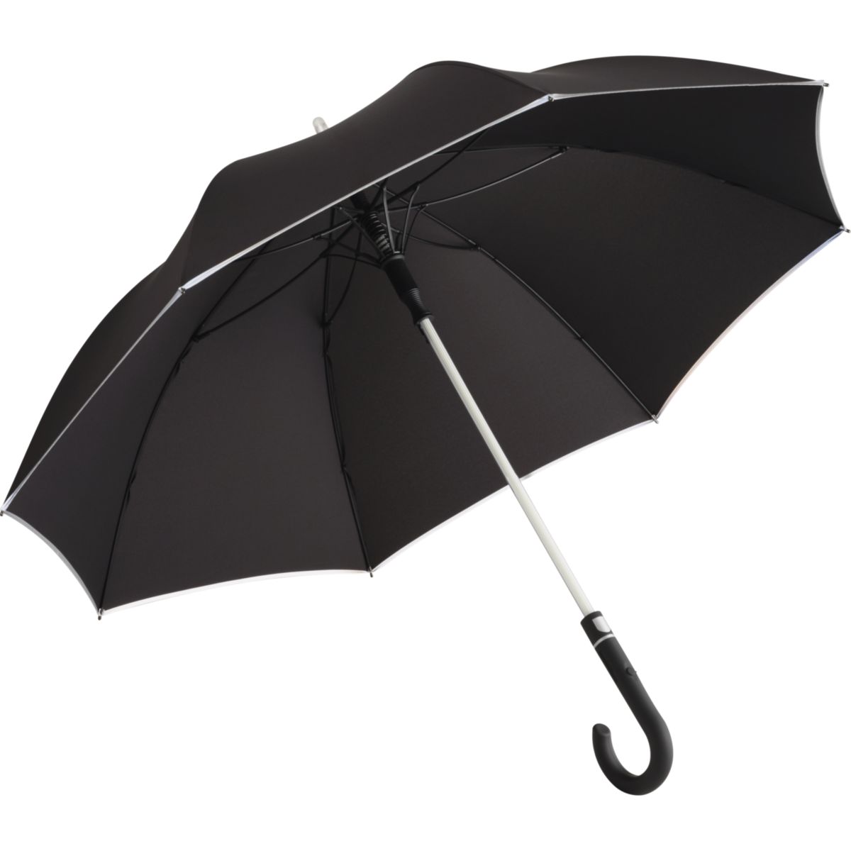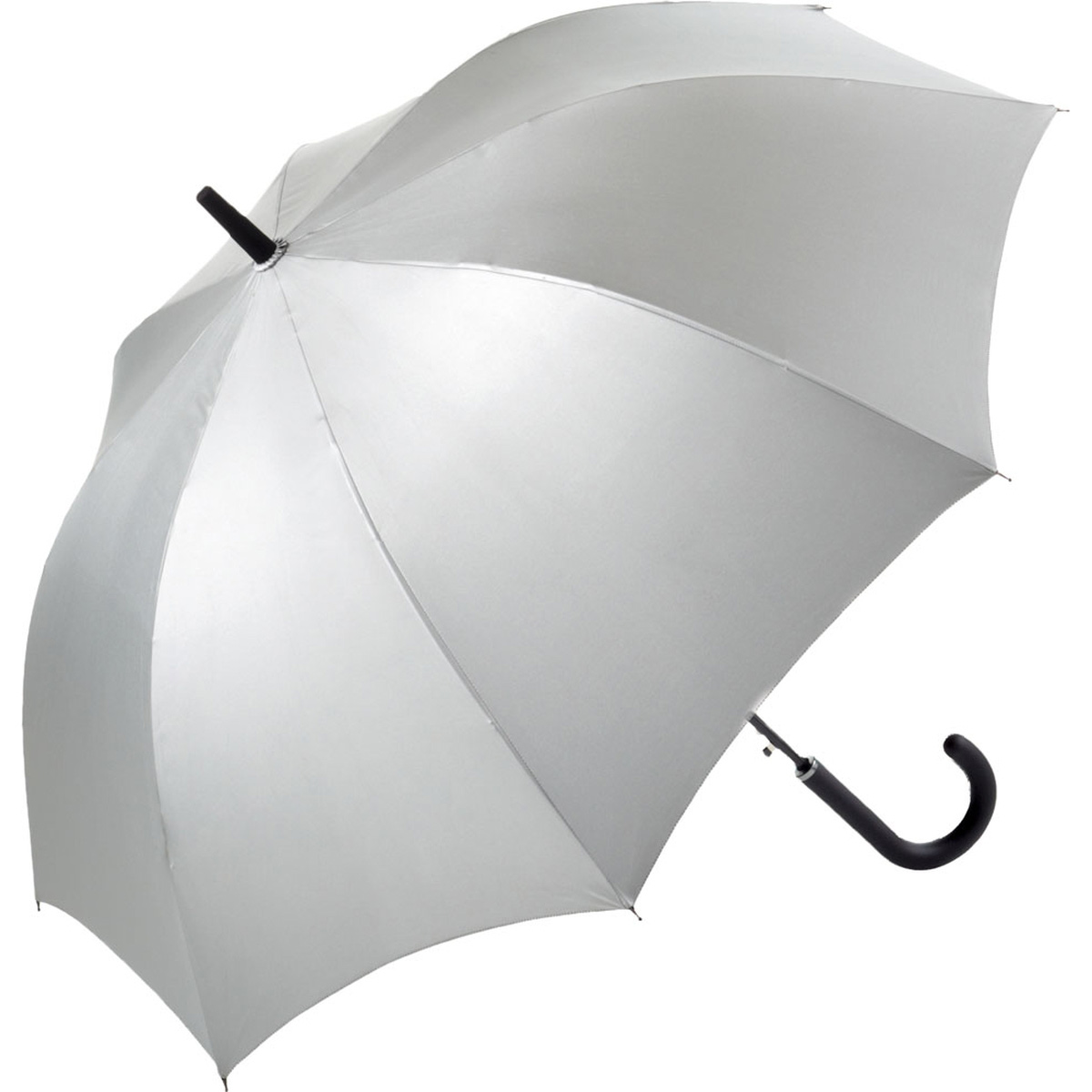 Sistema di ventilazione sovrapposto per la regolazione della pressione generata dalle forti raffiche di vento, pregiato sistema Windproof per una flessibilità del telaio massima anche in caso di raffiche di vento forti, confortevole funzione automatica per un'apertura rapida, bastone in fibra di vetro stabile, stecche in fibra di vetro flessibili, esclusiva impugnatura soft-touch con tasto di azionamento argentato e possibilità di applicazione della pubblicità, fodera con due nastri di chiusura per un bloccaggio ottimale in stato chiuso, comoda custodia a tracolla, diametro confortevole anche per accompagnatore. Diametro: 133 cm, lunghezza da chiuso: 102 cm, 8 pannelli.