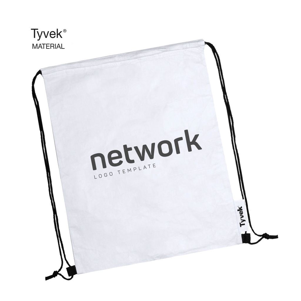 Sacca Zaino in materiale Tyvek® morbido e leggero, riciclabile al 100% e realizzato in fibre di polietilene, che si distingue soprattutto per la sua resistenza, flessibilità, durata e facilità di stampa. Con corde autobloccanti nere e angoli rinforzati. Con il logo Tyvek® sull'etichetta laterale.
