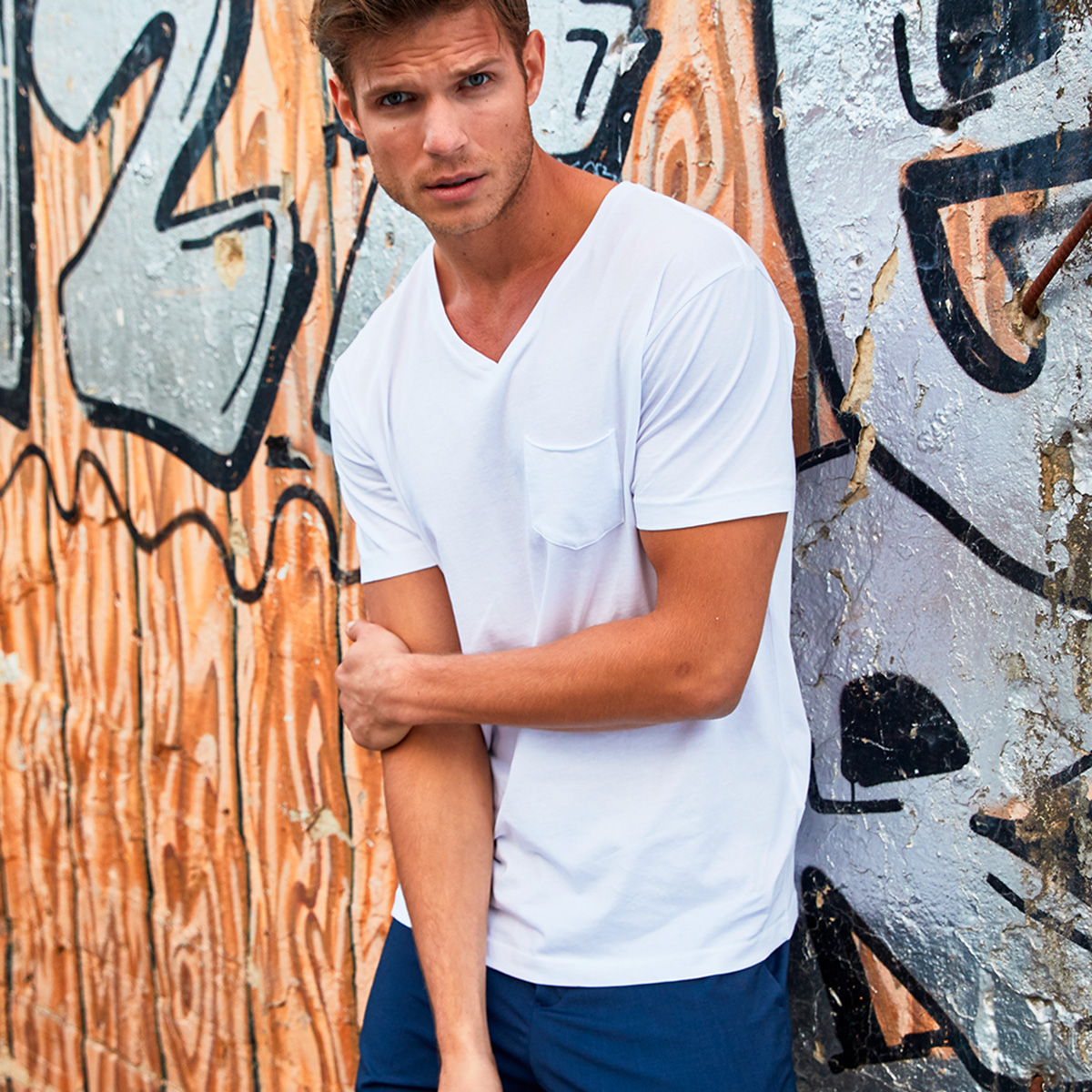 50% cotone 50% poliestere. T-shirt da lavoro in tessuto misto cotone organico ring-spun e poliestere per un perfetto mantenimento della forma e resistenza al lavaggio, inserti contrastanti sul davanti e sul retro, colletto in elastan, nastro di rinforzo al collo, lavabile a 60° C, ideale per asciugatura in asciugatrice.