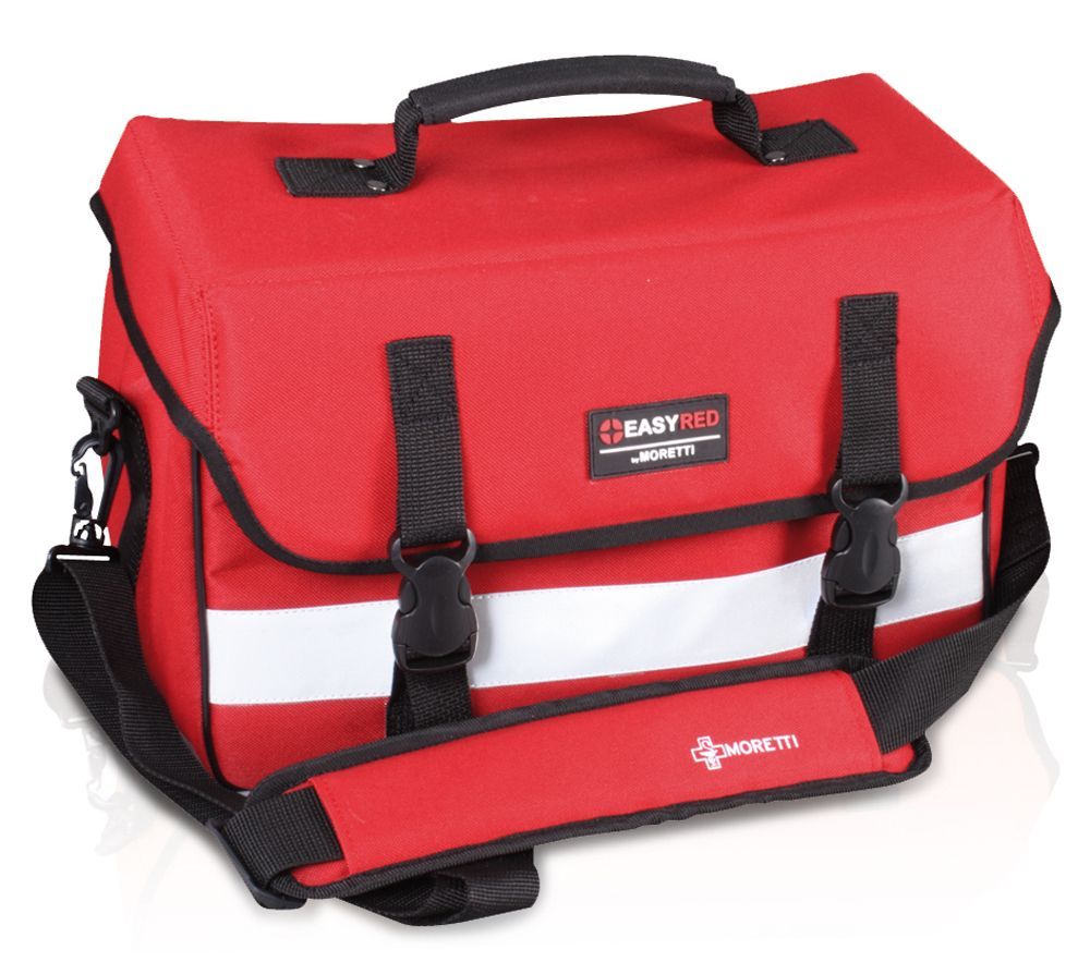 Borsa per emergenza e primo soccorso realizzata in materiale antistrappo facilmente trasportabile. Apertura superiore a cerniera. Alloggiamenti modulabili grazie ai due divisori facilmente fissabili attraverso due strisce in velcro. Completo di 2 tasche in rete. Trasportabile a mano o a tracolla.