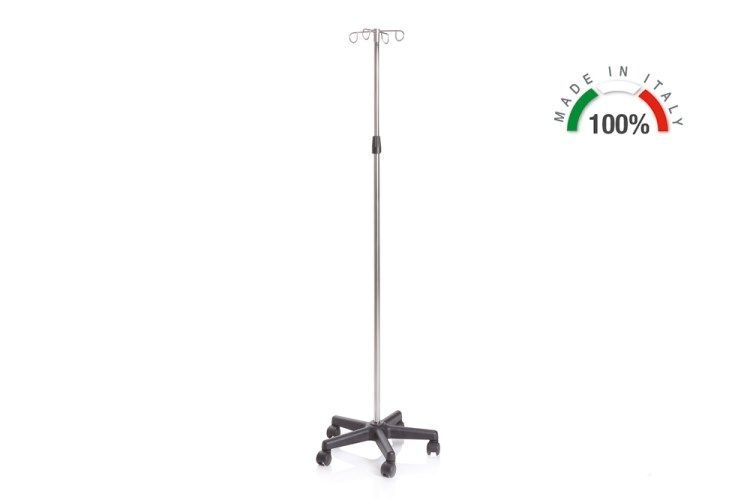 Piantana per ipodermoclisi in acciaio inox - 4 ganci su ruote