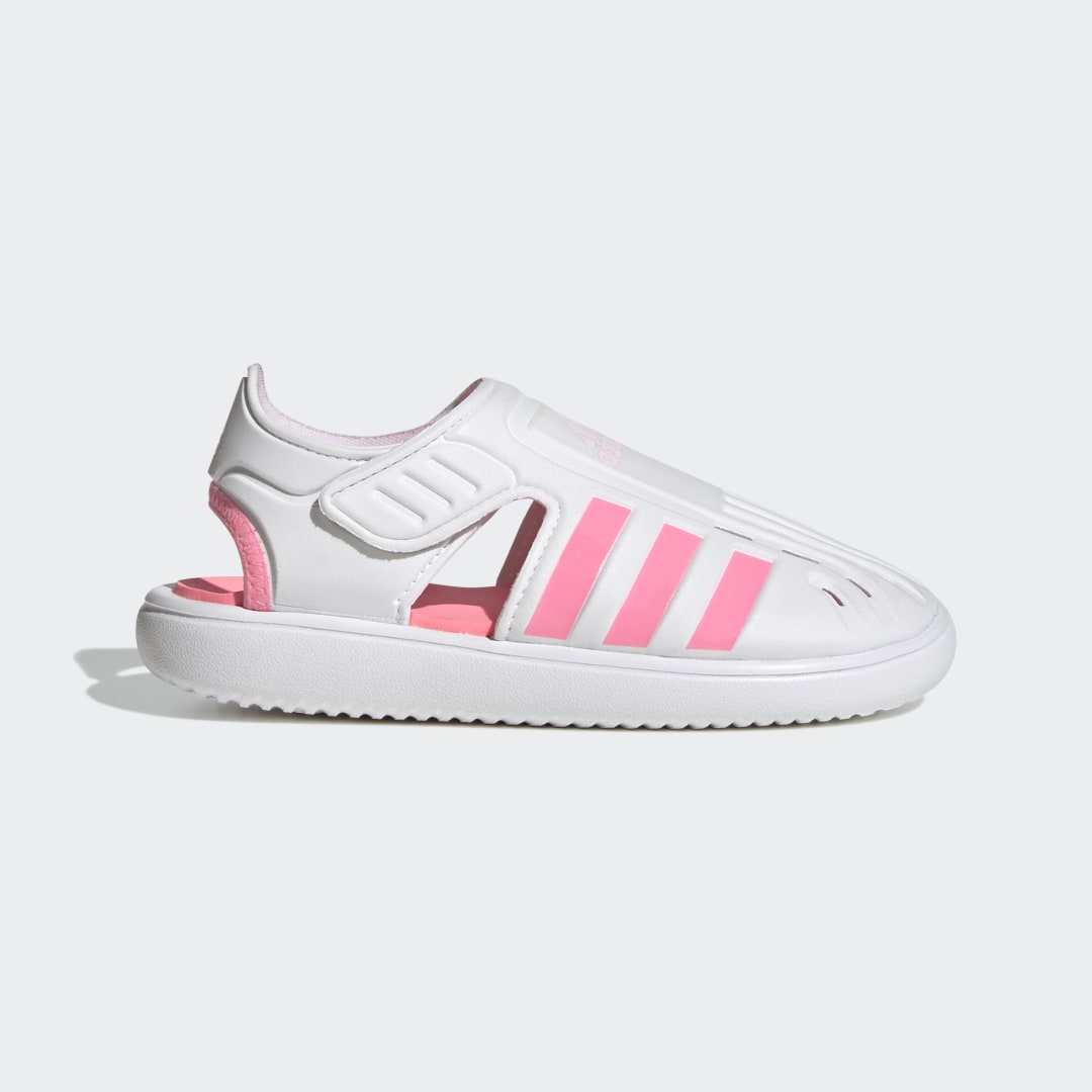 Campeggio e canoa. Schizzi d'acqua e bolle che scoppiano. Sì, è arrivato il momento delle vacanze. Le ali a strappo regolabili di questi sandali adidas kids assicurano una calzata avvolgente, anche con i piedi bagnati. La parte anteriore chiusa è dotata di aperture per un'asciugatura rapida, per mantenere le dita asciutte e proteggerle da oggetti appuntiti che rischiano di rovinare la giornata.