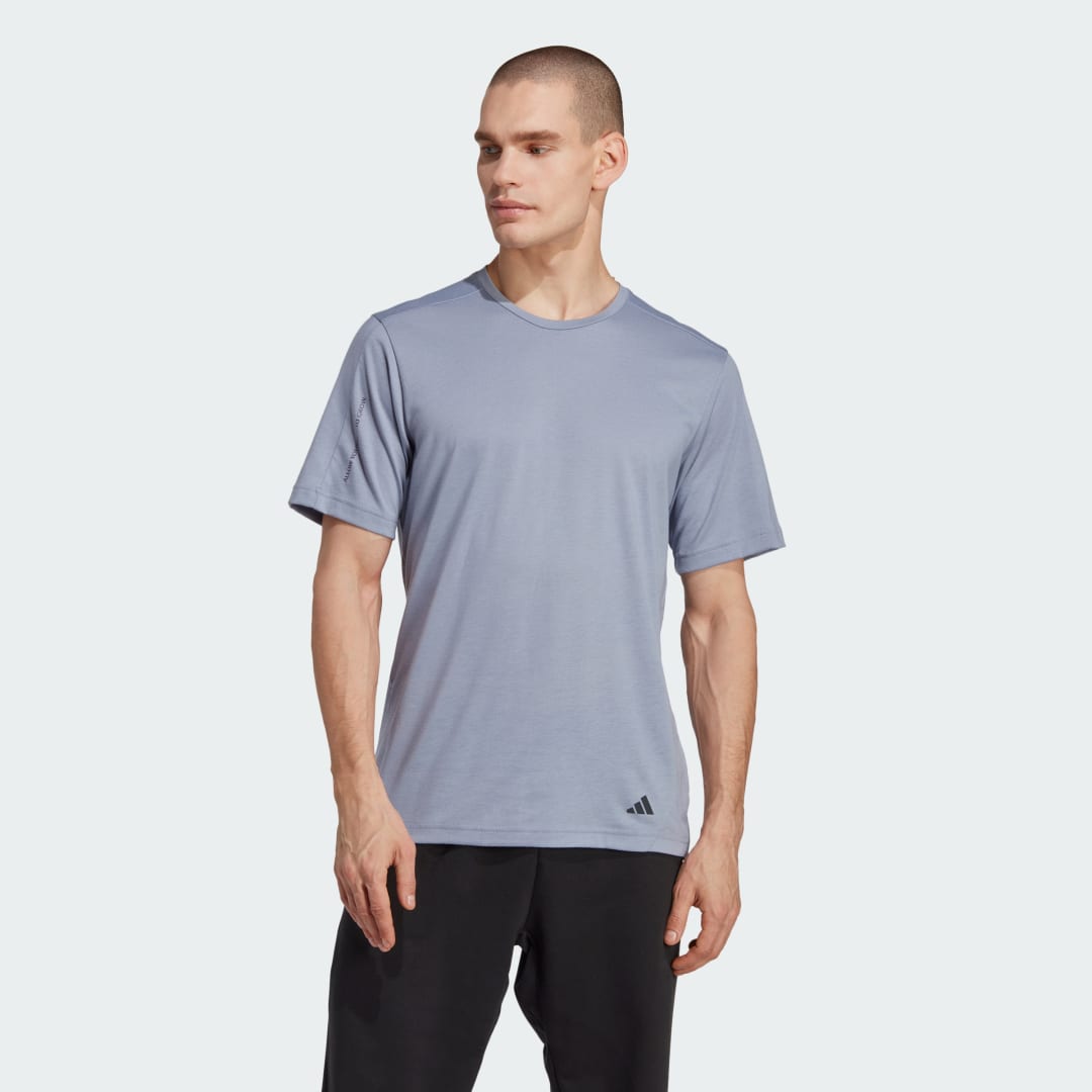 Lascia le distrazioni fuori dalla stanza. Questa T-shirt da yoga adidas ti aiuta a mantenere alta la concentrazione mentre passi da una posizione all'altra. Il tessuto leggero offre una morbidezza imbattibile. La tecnologia AEROREADY ti aiuta a mantenere la pelle asciutta fino al Savasana.Questo prodotto contiene almeno il 70% di materiali riciclati ed è solo una delle nostre azioni concrete per contrastare l'inquinamento causato dai rifiuti plastici.