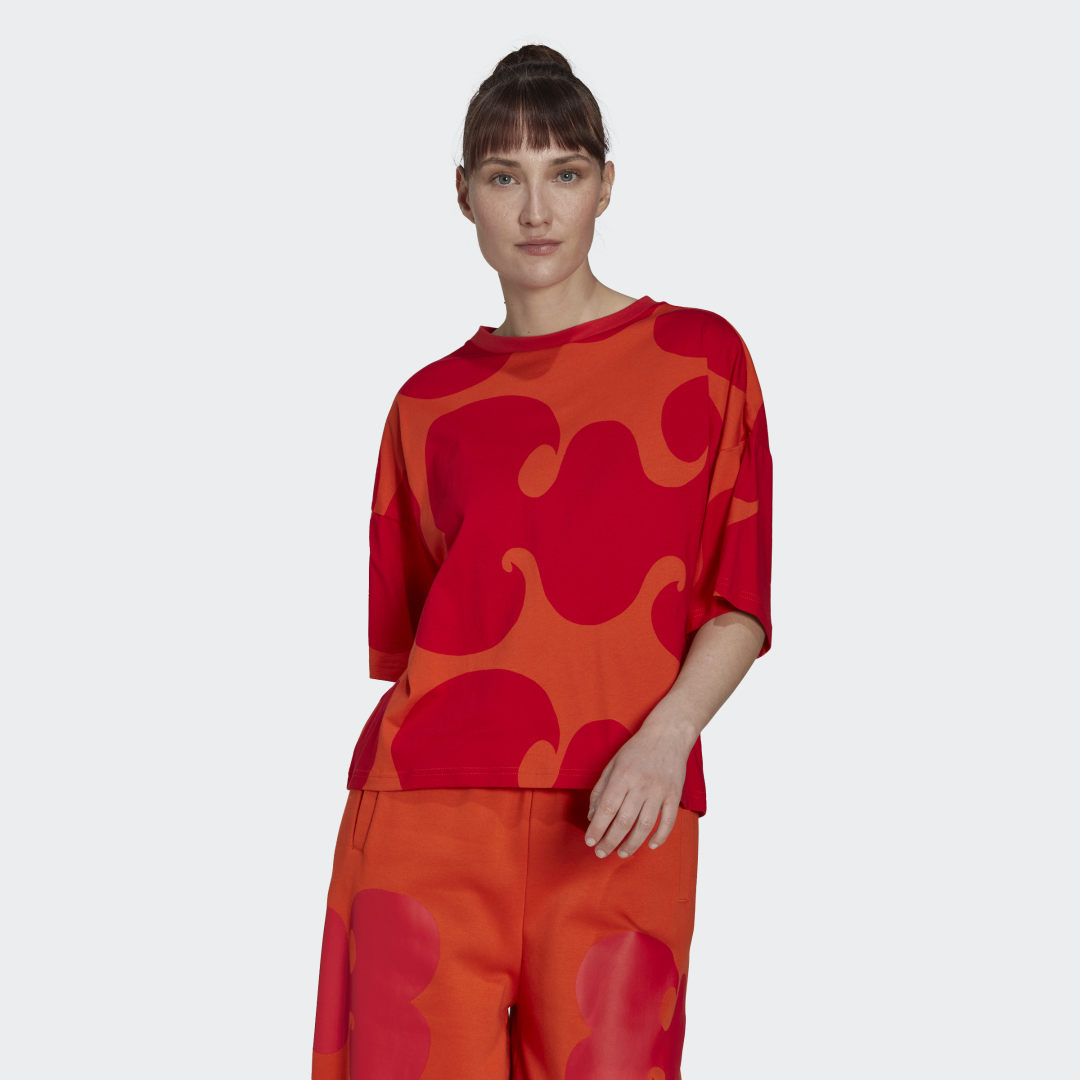 Semplice ma di carattere. Sportiva e d'effetto. adidas e Marimekko tornano a fare magie insieme con questa T-shirt. Il taglio ampio si abbina perfettamente ai jeans boyfriend o ai leggings. Il jersey di cotone è pura morbidezza.Con i nostri capi in cotone supportiamo una coltivazione del cotone più sostenibile.